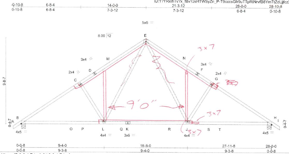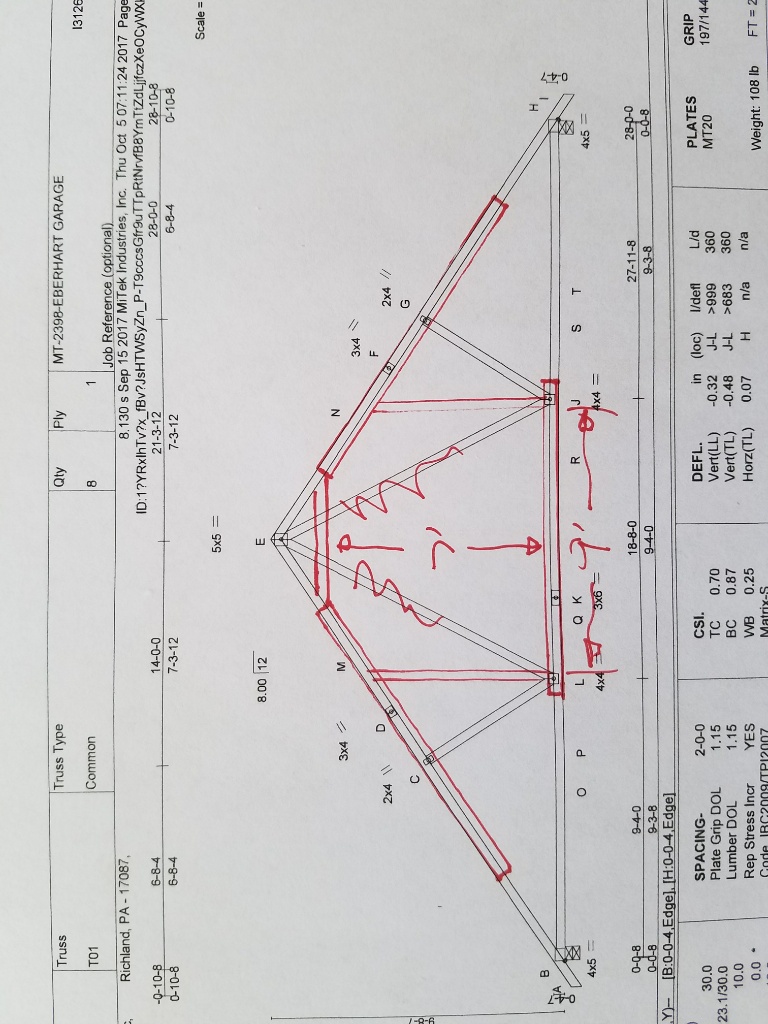 What is the span of the trusses you want to change? My garage is 26ft wide, if we are close I can send you the plans for my trusses? I had them designed with the room upstairs. I think you are much steeper pitch? I think mine are 6.5/12 pitch