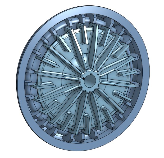 I'm thinking 12" (ok 11.75" so it can be maybe from a 12x12 cut which come undersize) 7075 rotor that is very much like a pump rotor and I'm leaning strongly to single sided, just like most pumps.