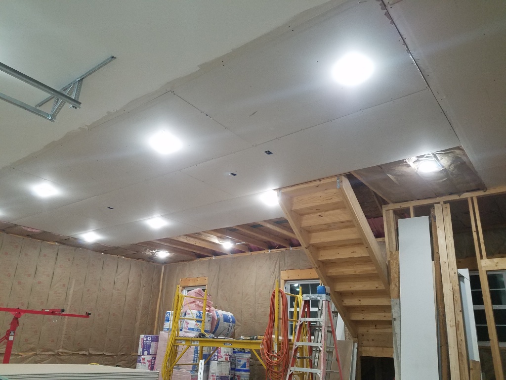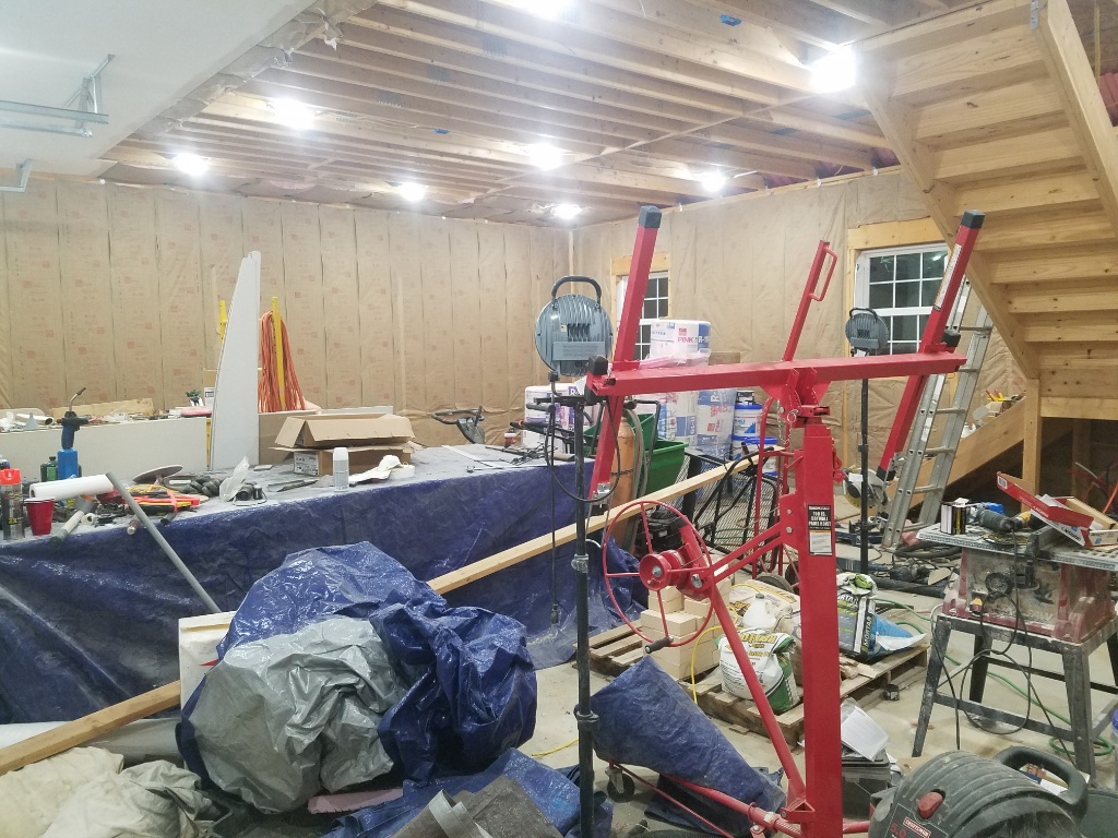 All the stuff that accumulated in the shop is an issue... Sunday I worked until 2 or 3 making room to work. The ceiling is getting its drywall now though, another night or 2 and I'll be on to the walls