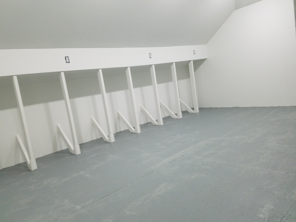 It's now very white in the loft. Last night I used up what was left of the oil based primer/sealer I had from sealing the basement to seal the OSB on the floor, once the dries I'll paint over with floor paint...grey i guess. The walls still need another coat, the compressor room needs a door, and I need to build some shelves.....still a long list.