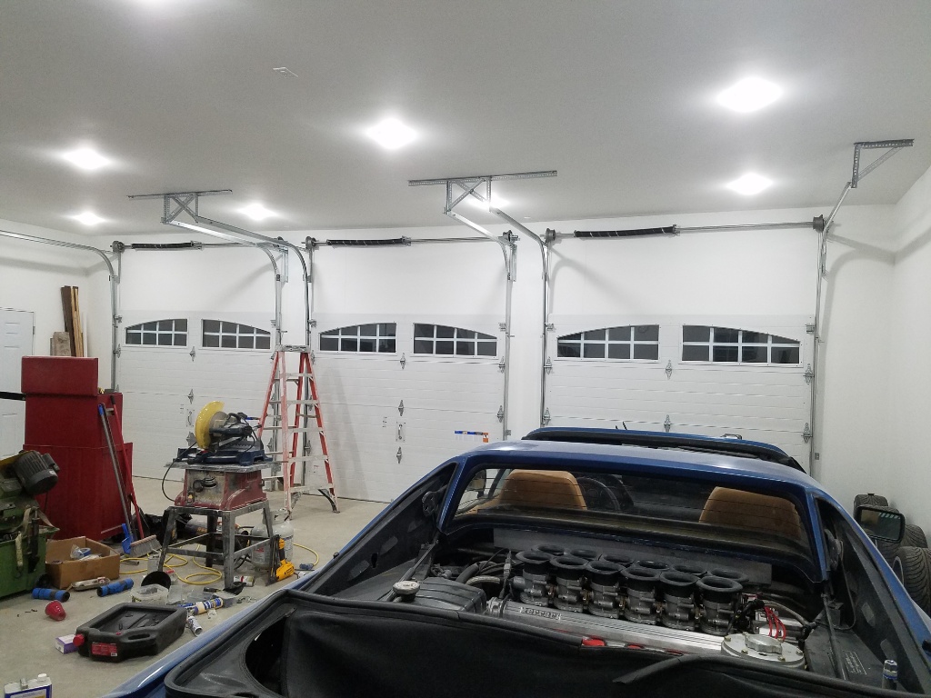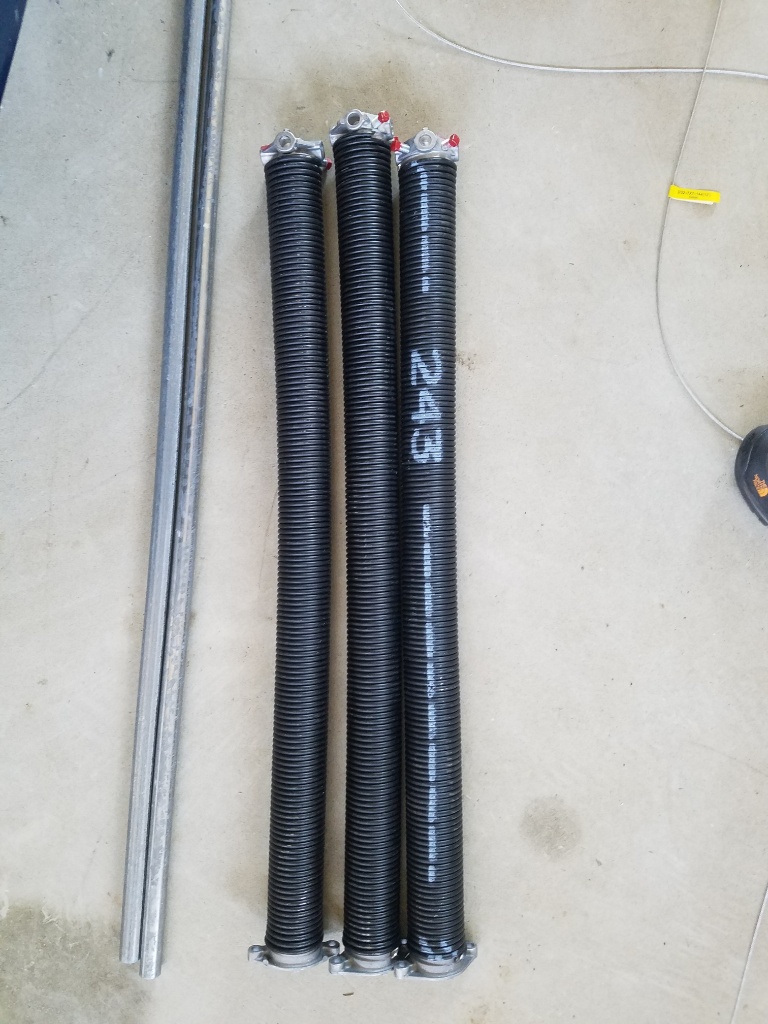 The springs could stand to be just a tad stiffer but I'm not cutting anymore because of fatigue. If I ever have them apart again I'll probably shorten the cables about 6" too to get the very bottom further onto the taper so it will tolerate more spring in the mid section and still sit on the bottom seal well but for now they are way better than the doors on my house so good enough. They also don't weigh the the 130lb the manufacture told me...they weight 149 which might make this whole thing not completely the door places fault as I'm sure they would have given me stiffer springs with this heavier number....but the math says the one they speced come out at about 150lbs so that's confusing, I assumed they added 20lb for hardware....who knows I guess.