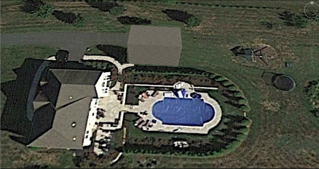 So the plan is tuck it in kind of like this....not sure I have things scaled exactly right but it should be close. This puts the bay door in line-ish with the driveway and the powder room just off the patio so with a few little landscaping changes you see a pool house from the patio and a garage from the driveway.....at least in theory.