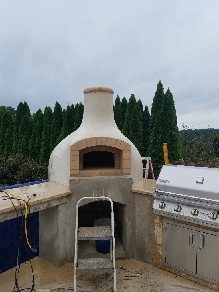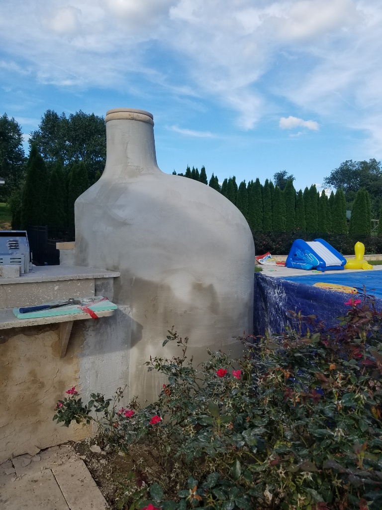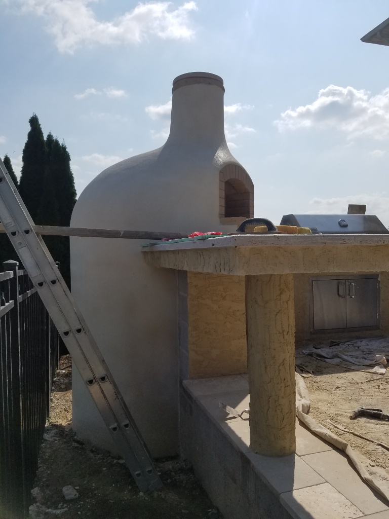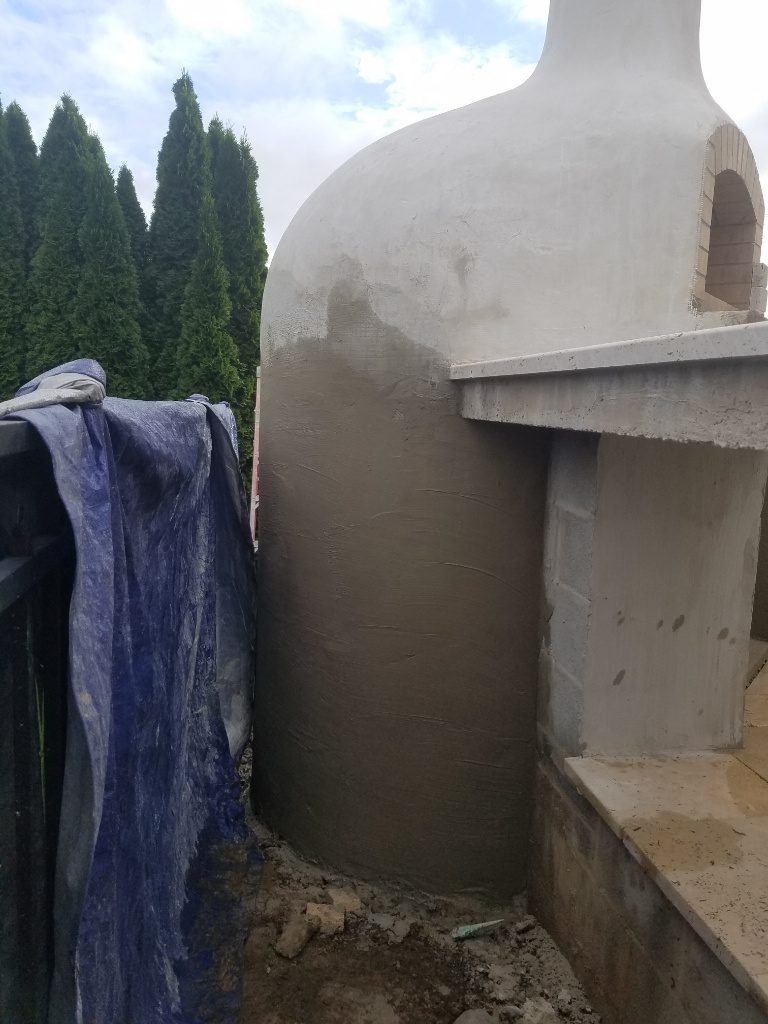 I also learned some important lessons about stucco color being completely dependent on moisture......the oven turned white as it dried so I had to do it a second time. The best I can figure the problem was the base...i loaded it up with latex modifier to make it basically waterproof to keep the insulation dry....so it didn't suck any water out of the top coat....white and Lana freaked and I lost about 4 hours and 2 $50 bags of stucco.