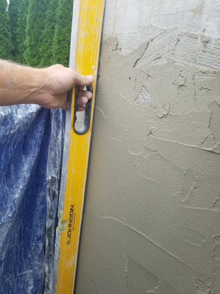 I did 1 coat Friday and beat the rain then Saturday rushed home after soccer to try to get coat 2 done during a break in the rain ....this time i was not so lucky and the rain started just about the time i was towlingvon the last of the mortar and i still had to sponge it smooth so about 15-20 minutes of light rainbefore i could get plastic on.....a little damage but not bad considering.