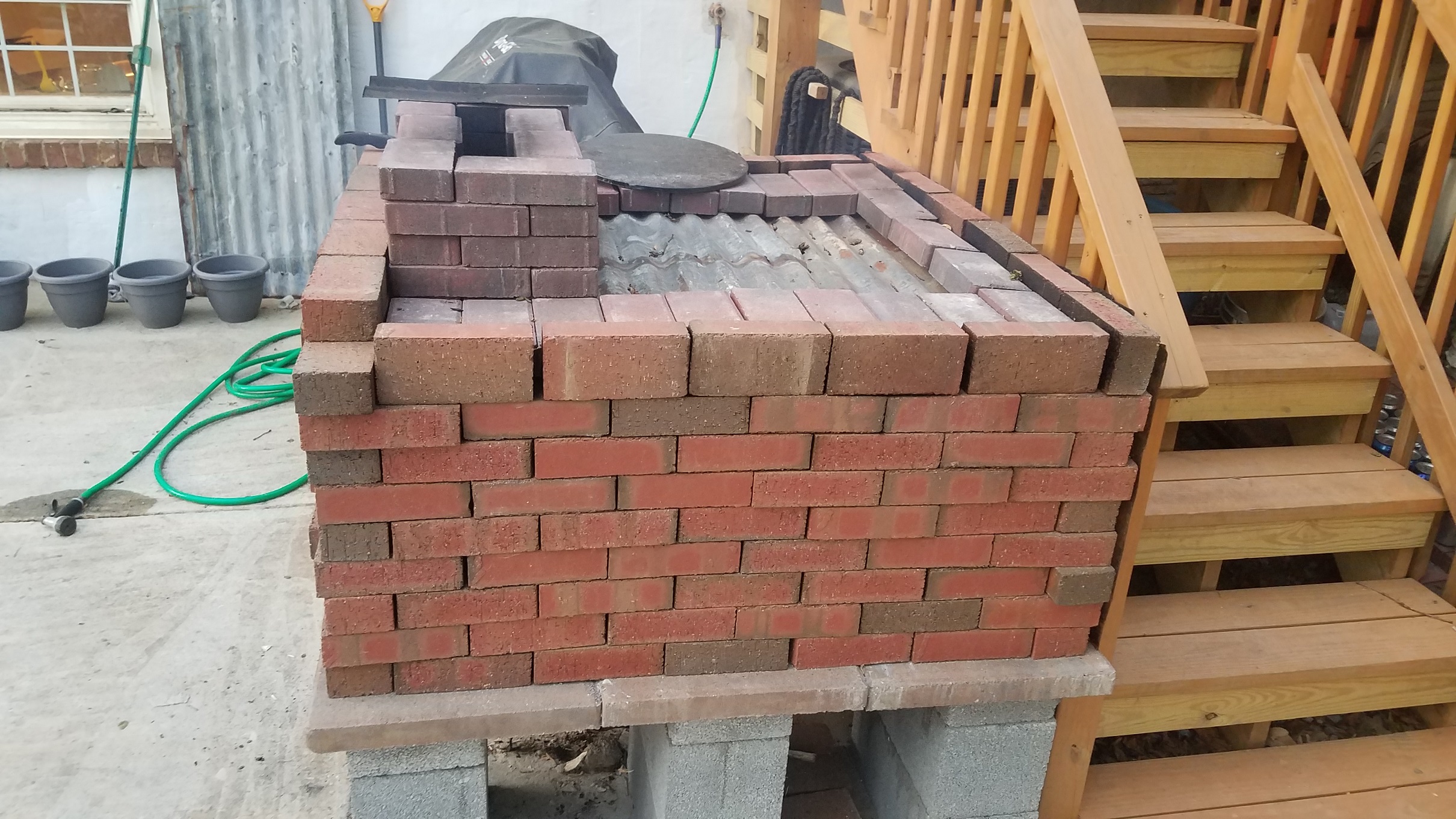 Here is the stacked over as it currently exists. Not ideal or professional but having fun trying different configurations by stacking the bricks differently and trying differ heights etc.
