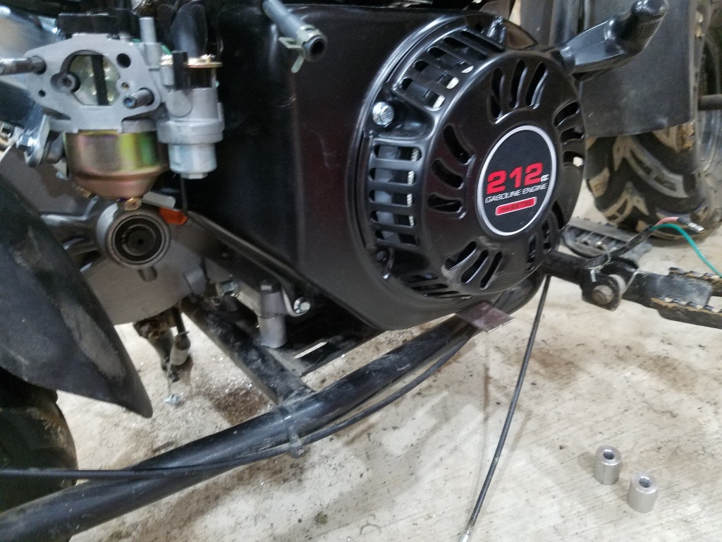 The engine swap is done other than connecting the handlebar kill switch. The 11 year year old road it around last night in the dark and it got a big thumbs up and a WAY better than before!