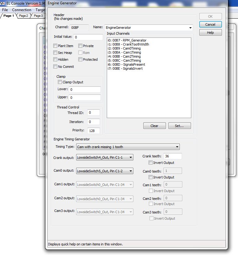 Its got about 30 different crank/cam pattern options and you can assign them to any of the output channels and then put a control on the user screen to set the test RPM. Hopefully I can just jumper the signals...but it might need a pull up on it, I'll find out soon enough.