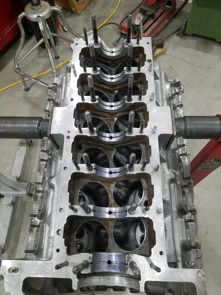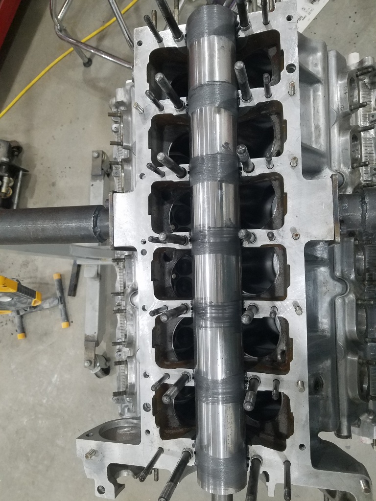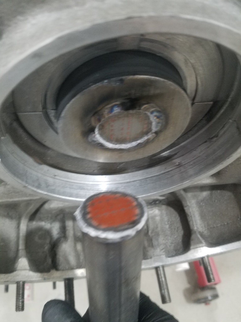 Lapping bar in....hmmmm... sure looks like only the 3 center bearings are toughing...that is the direction the block was wrapped after welding but I thought it had been corrected, only mostly corrected it appears