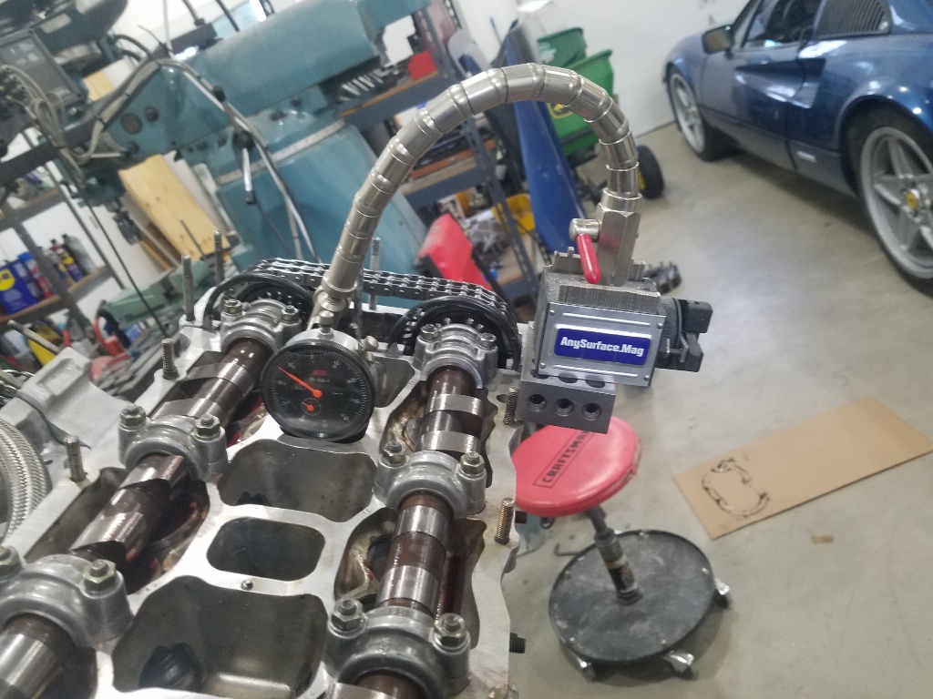 First up, a stud for the timing chain drive pulled out on the last test fit so it needed to be helicoiled. I like to fit or make a drill block to be sure it stays straight