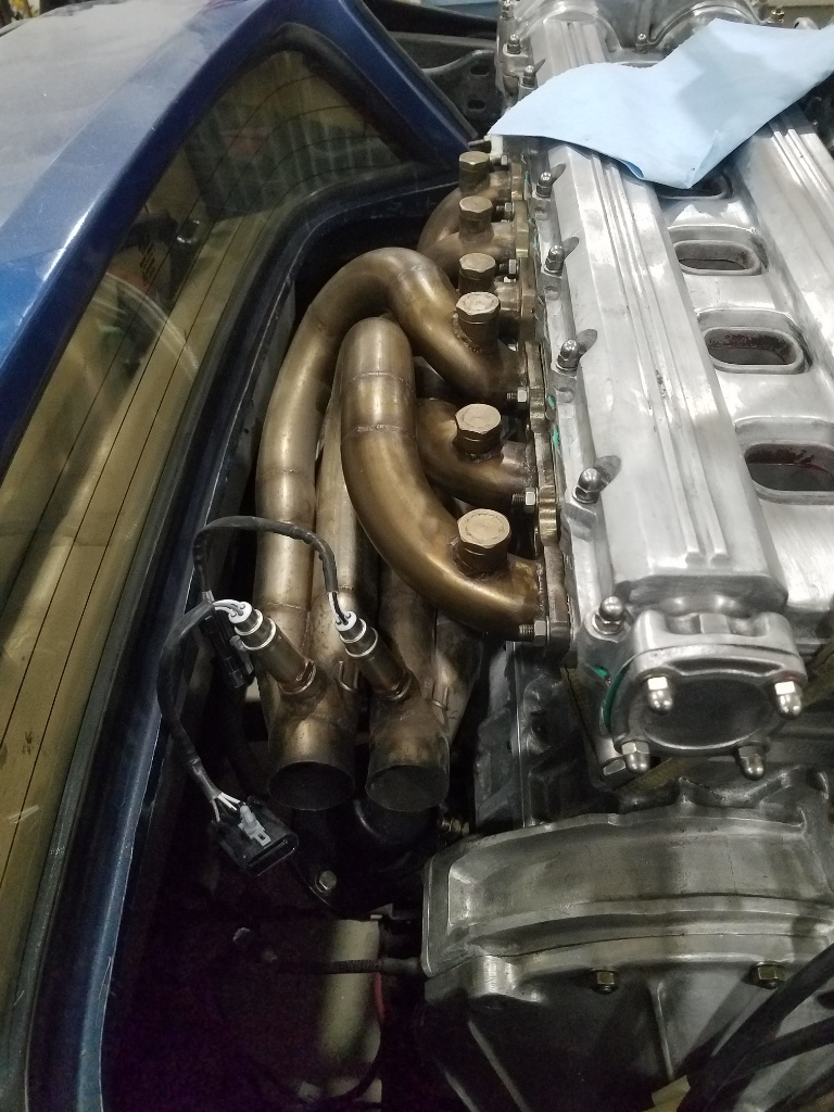 Car on jack stands, engine off the bench. I'm thinking the front headers maybe can go on before the engine is full in so I can reach all the nuts so I grab the headers, chucks of valve seat fell out of 1. Grab the other 2...what the???