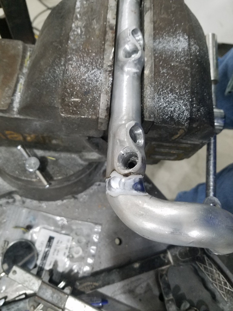 I'm now believing that I got the positioning of the rail mounts a little off and I'm torqueing the rail just enough to cause a leak. Tonight I'll cut and reweld the loop on the end so the rail bolts just as it sits naturally