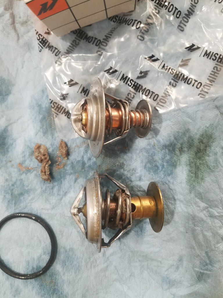 and that was followed by an hour "do I have the right one?" investigation...I decided both are right. The new $51 Mishimoto is shorter and allows more recirculation flow when the t'stat is closed but does close the recirc when its open, its closer to the ferrari design iirc.