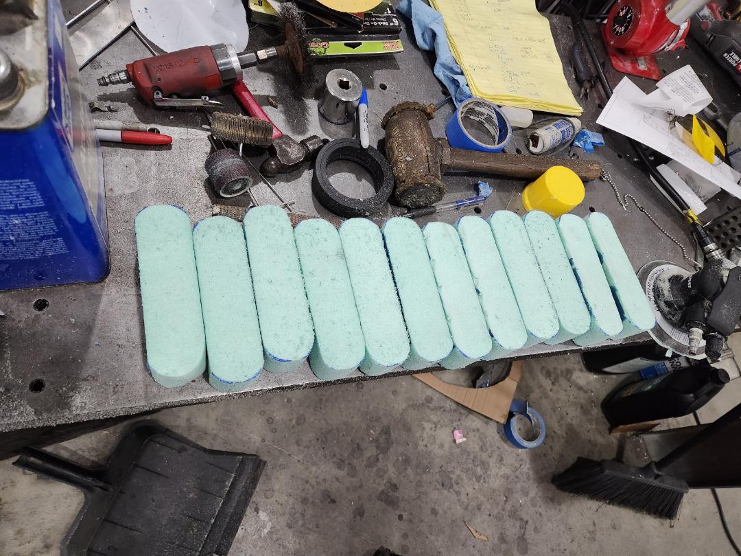 Then moved on to the ducting. Then plan is an oval with about the same area as a 4" round. I made a bunch of pieces and will miter than glue them. My hope is I can get it looking decent then fiberglass then pour in some acetone or similar to remove the foam. Im thinking epoxy resin as the polyester will also dissolve the foam. If that doesn't work out I'll use the epoxy/glass piece to make a mold but that is more work so hopefully this goes to plan the 1st time.