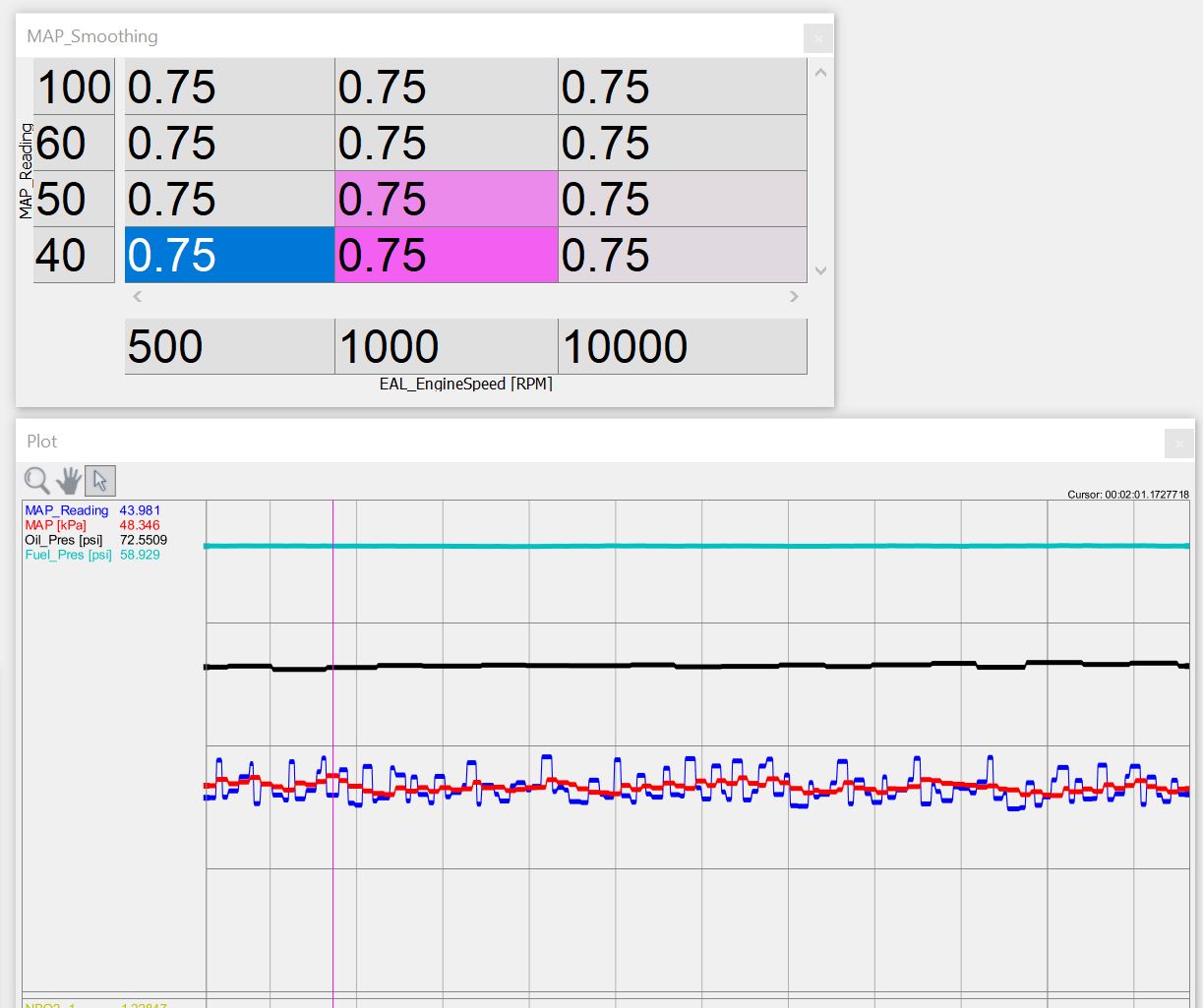 So that is the main MAP signal and the reason I explained that is because trying to read the cylinder MAP is much harder because You're not just trying to smooth out 60-180 degrees of signal, you are trying to