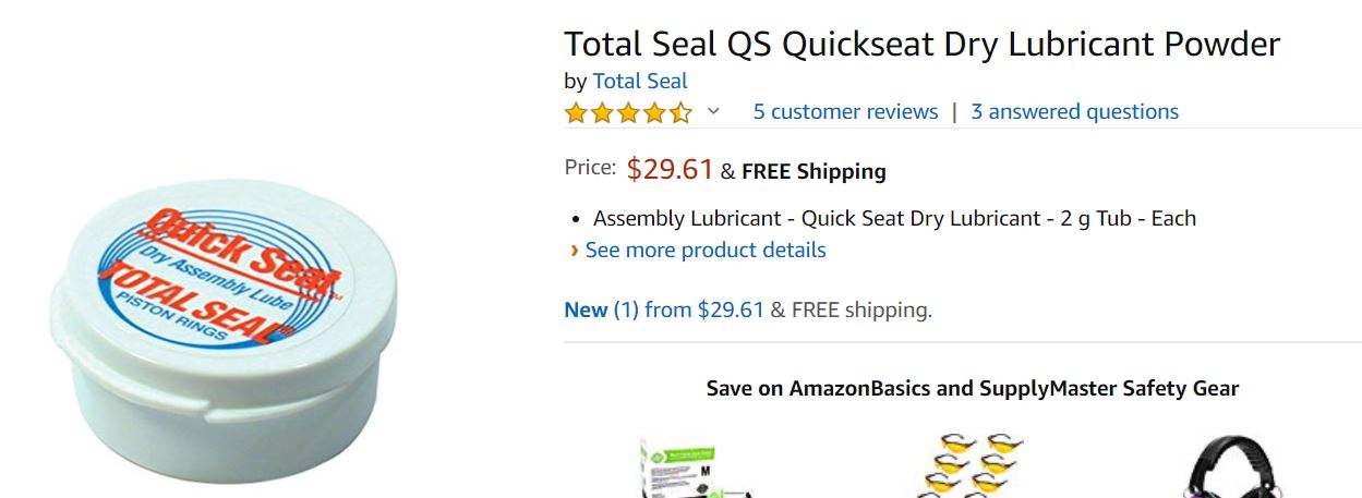 Wade also talked me into buying Quick seat dry lube to help seat the rings quickly. I had a buddy that used to dry install new rings, this seems like a refinement to that process.