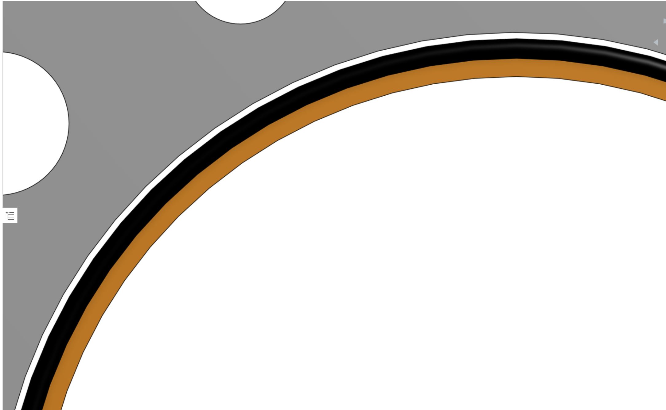 Now the concern is I'm using to the oring to align the flame ring but the oring needs room to grow radially when its being compressed axially. Below are a few cross-sections. On the right is a rectangle .070 wide by .050 tall (1.778x1.27mm) and it has an area less than the oring, so that is a no-go. Moving left is the round oring and a couple deformed shapes with the same area (rubber doesn't compress, it deforms so the cross section remains about constant). I don't have FEA software available but I'm pretty sure the far left is going to be close so I need to leave about .0925 (2.35mm), or a clearance of .0225 (.57mm)...which means the oring is really aligning the flame ring until its compressed. I'm thinking I'm going to make the flame ring ID 86.5mm to go with the 86mm bore and just kind of hope that if I stick the flame ring in place with aviation sealant it stays there and the oring can compress out (it will stretch about 1mm to fit over the flame ring). The other option is I my the ID fo the flame ring large enough to to know it can never touch the piston at full 0-compression assembly but that both makes it thinner and lowers compression so yuck.