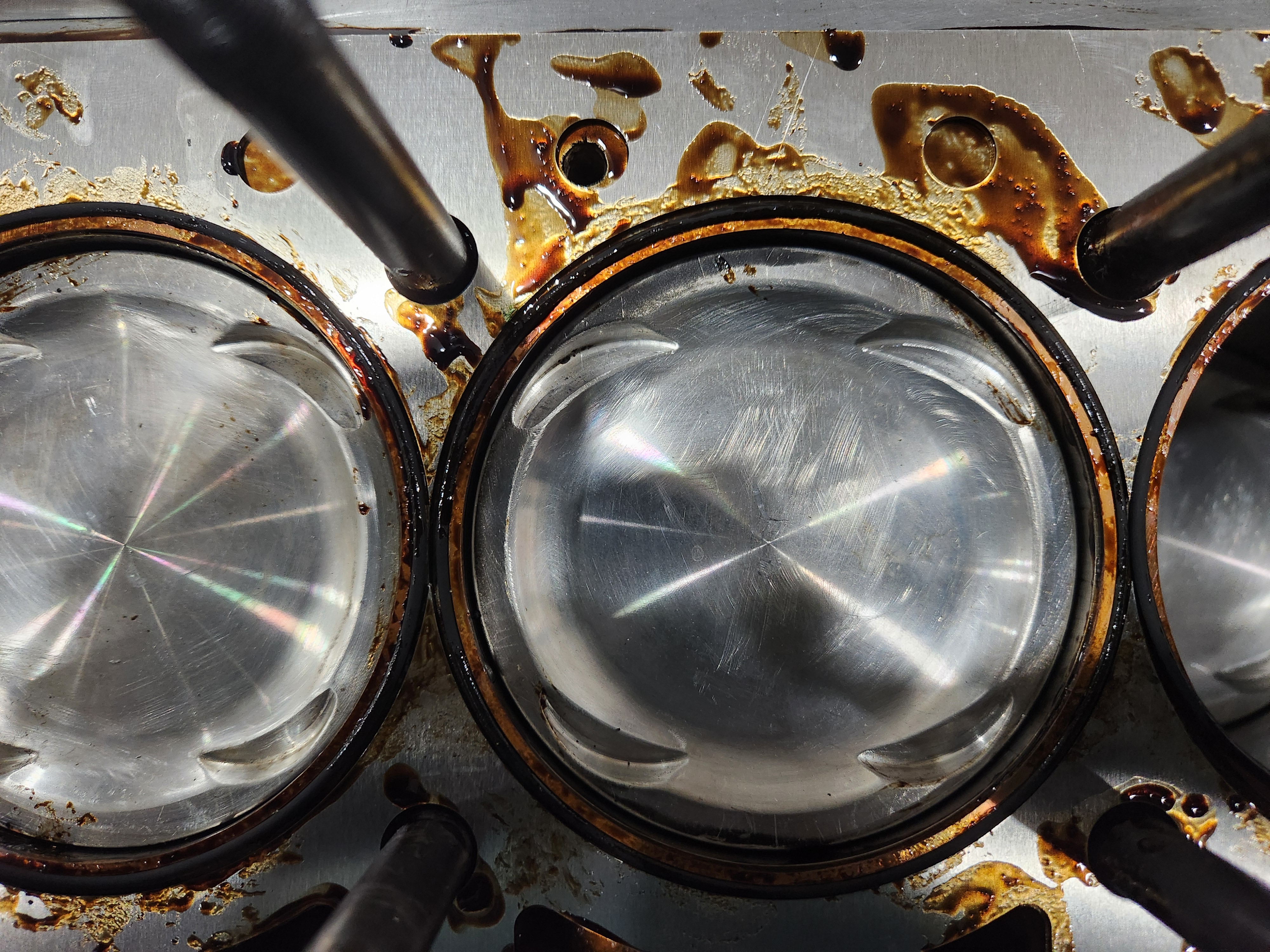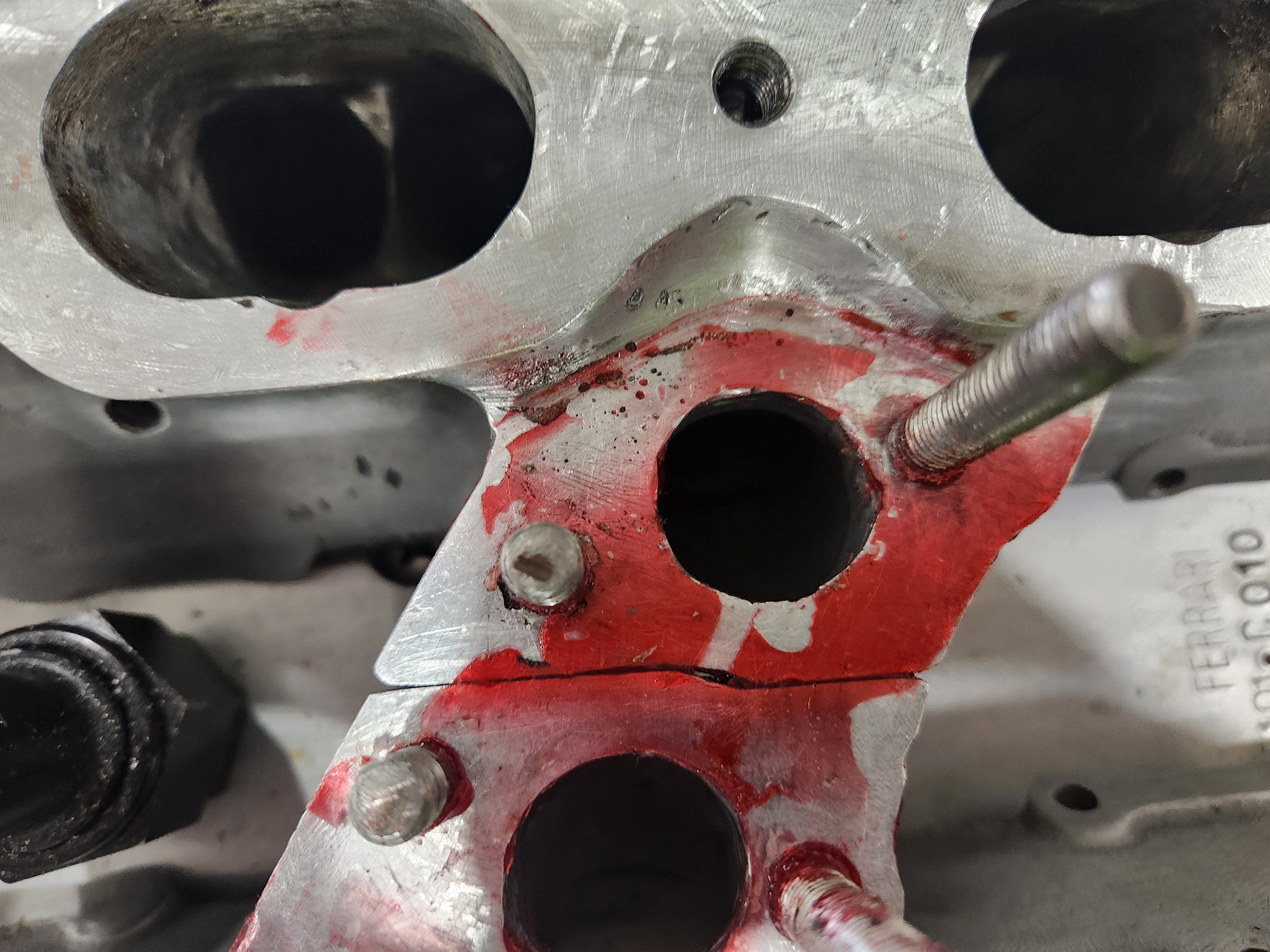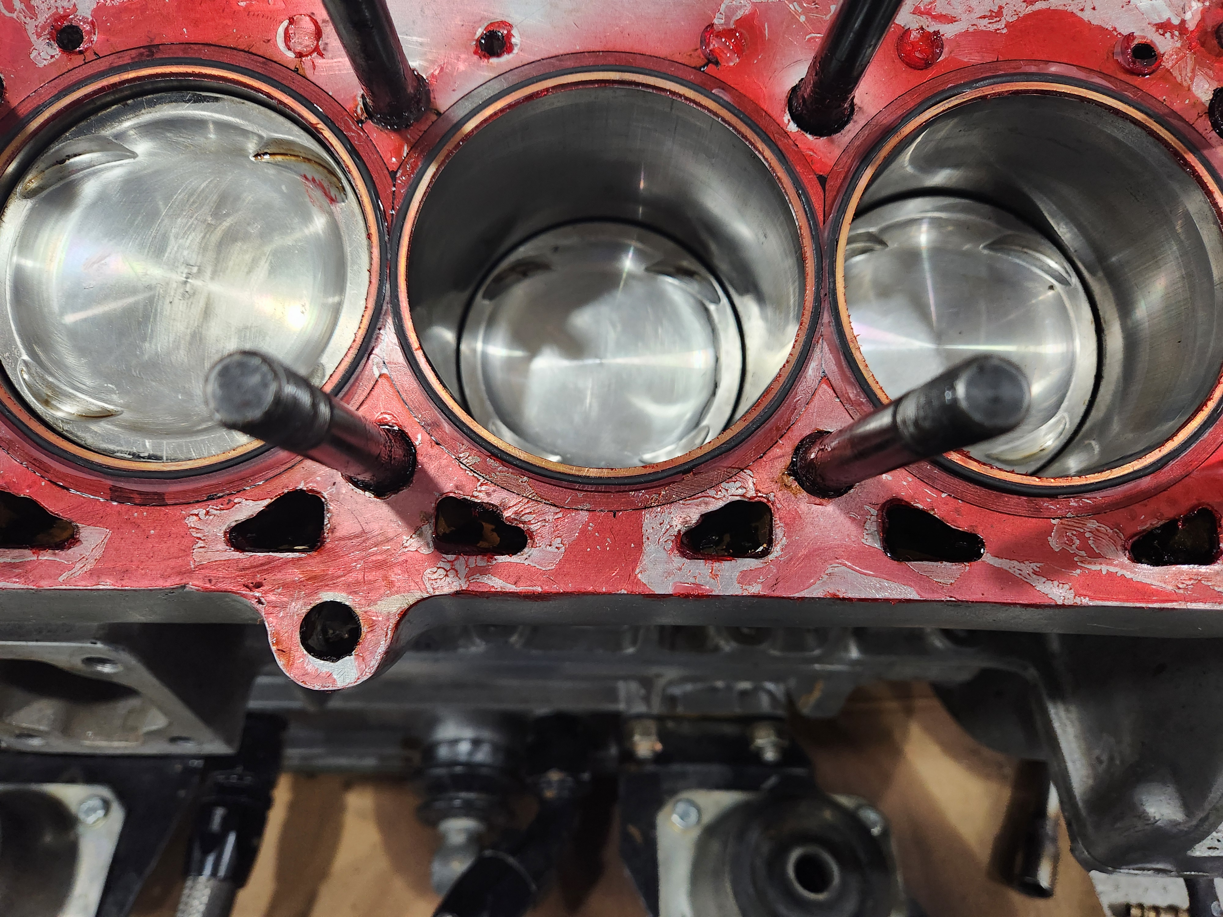 Strike 2. Gross leak out the side. When I got the heads off the o-rings stated put and looked. The issue appears to have been time, maybe it could be solved with technique, not sure. I coated the deck the shim, installed the shim copper and o-ring, then coated the top od the shim and head, assembled and torqued. It looks like the 518 began to set in the thicker areas that made contact as soon as I set the shim on and by the time I torqued it was too late for the material to flow and seal. Then it took forever to clean it all off.