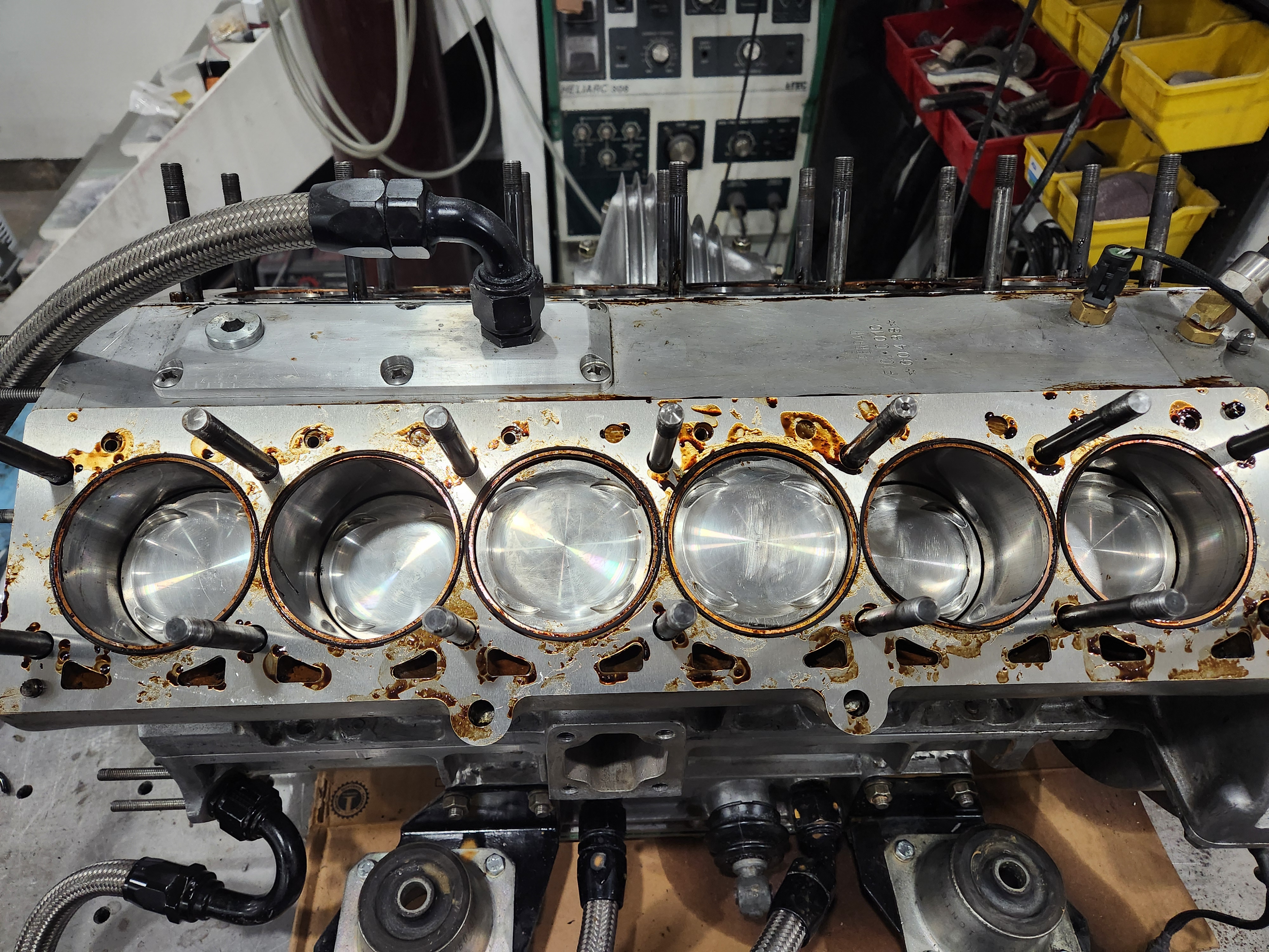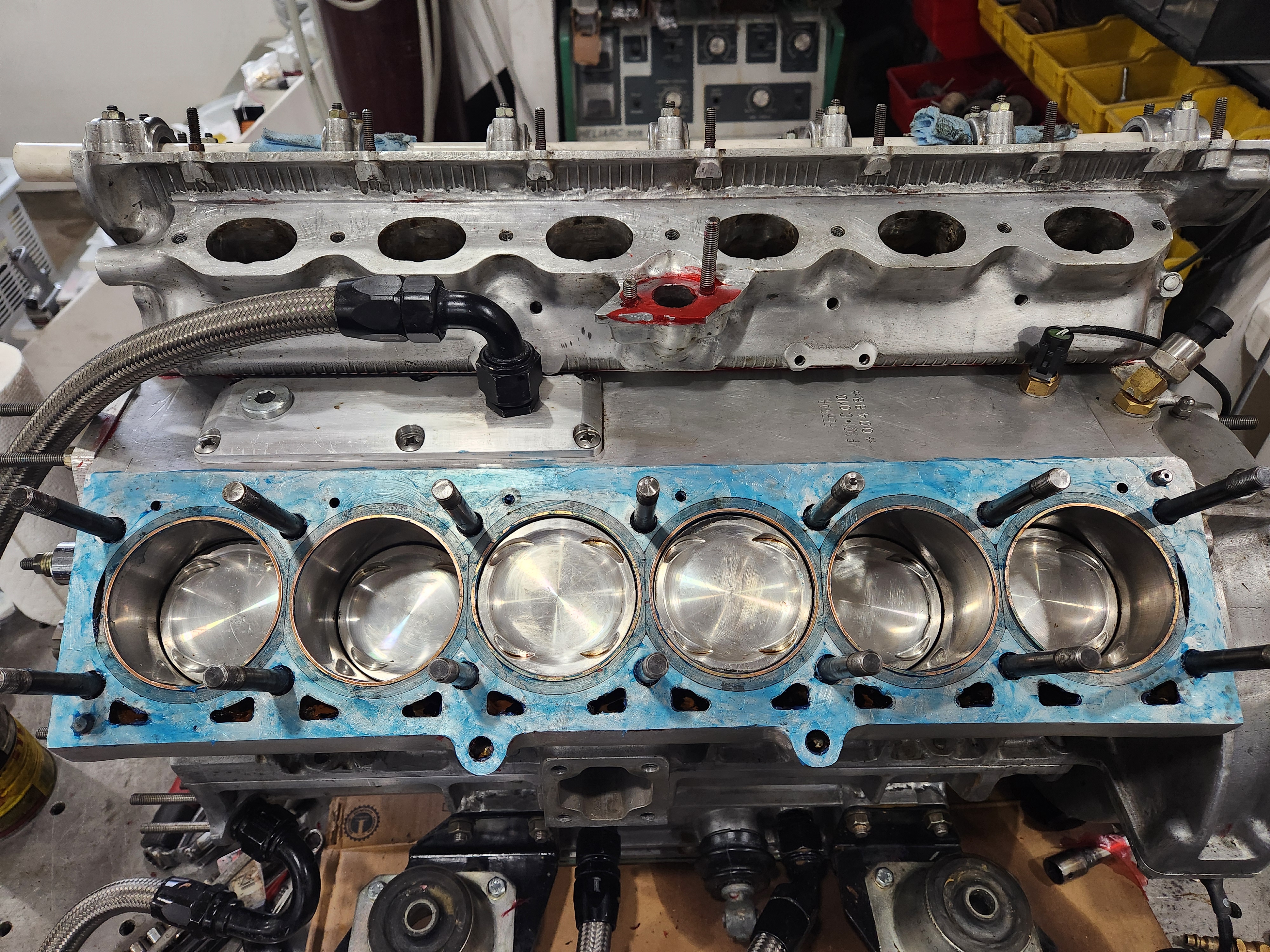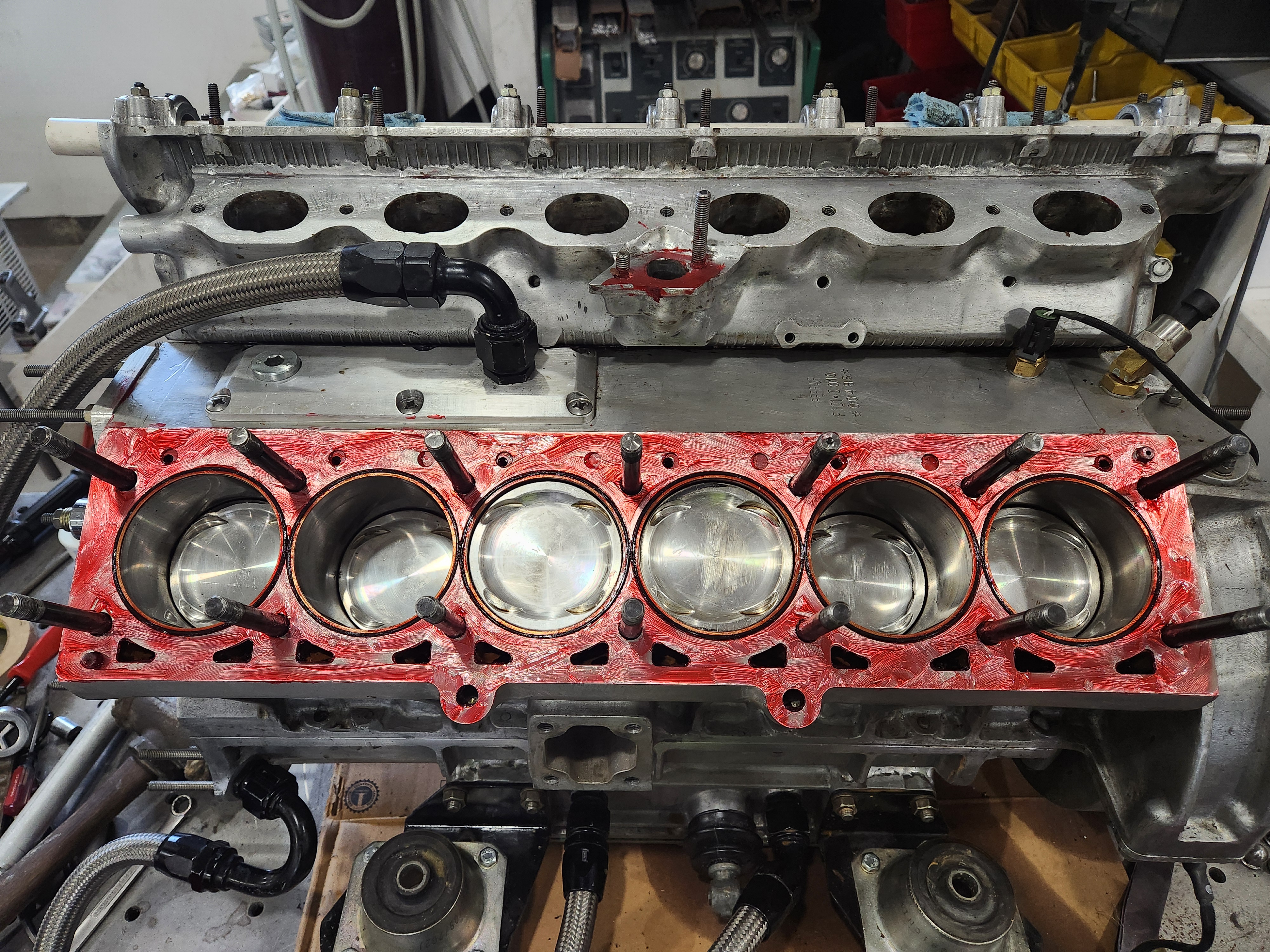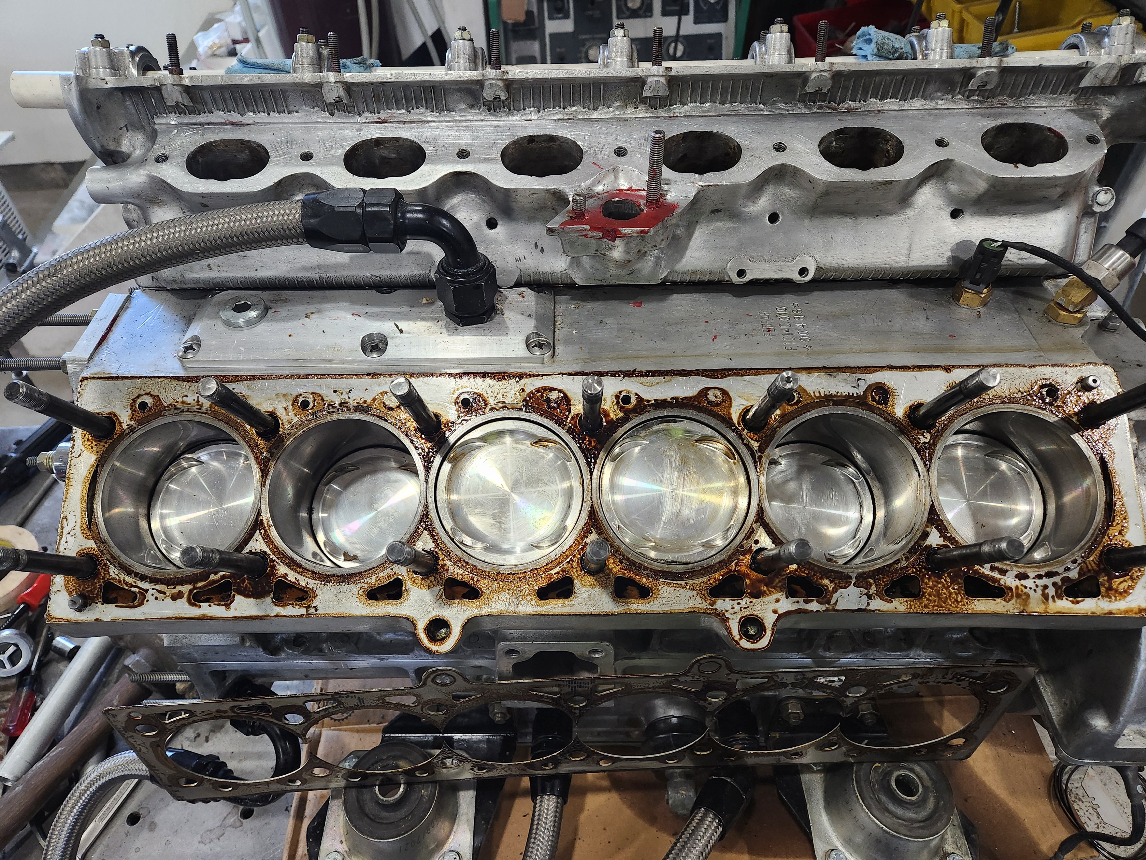 Strike 2. Gross leak out the side. When I got the heads off the o-rings stated put and looked. The issue appears to have been time, maybe it could be solved with technique, not sure. I coated the deck the shim, installed the shim copper and o-ring, then coated the top od the shim and head, assembled and torqued. It looks like the 518 began to set in the thicker areas that made contact as soon as I set the shim on and by the time I torqued it was too late for the material to flow and seal. Then it took forever to clean it all off.