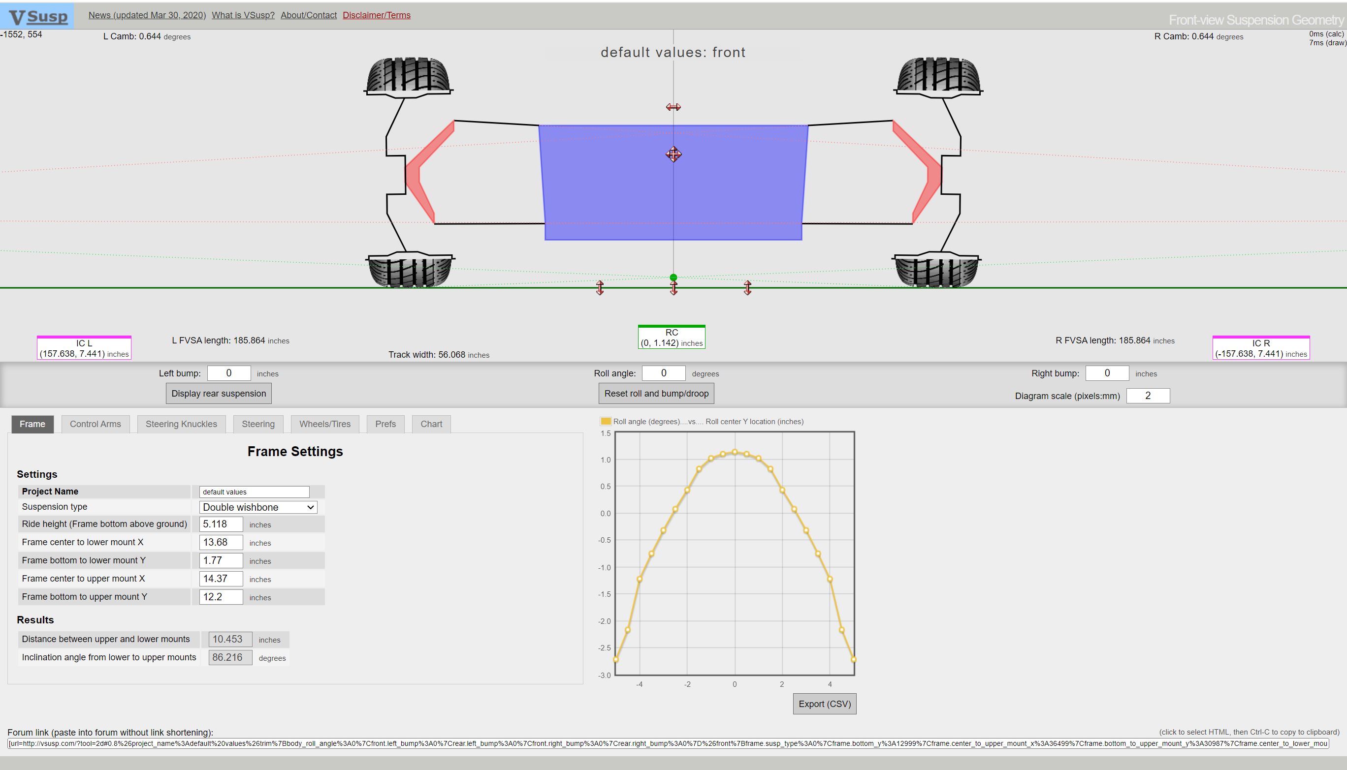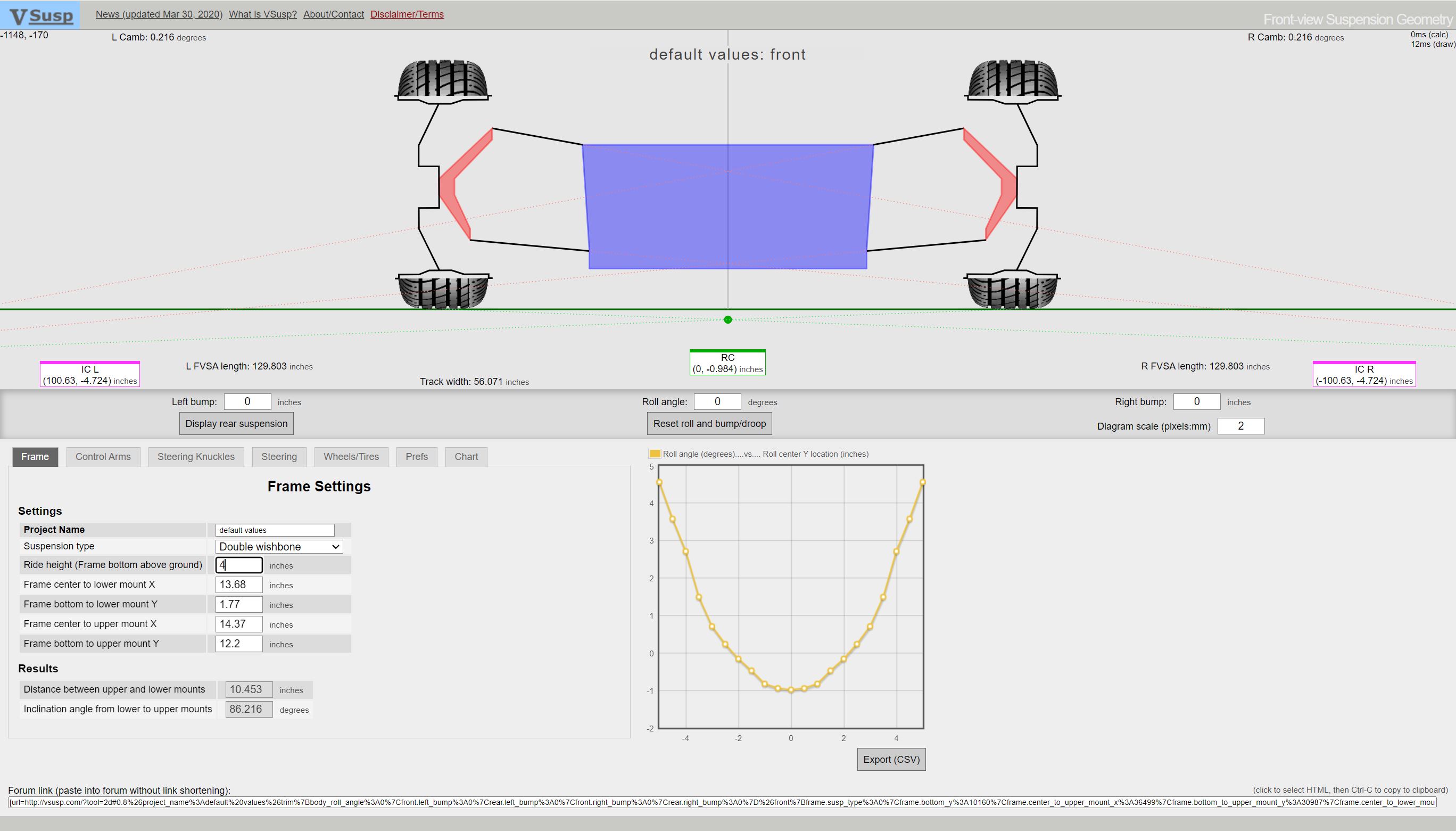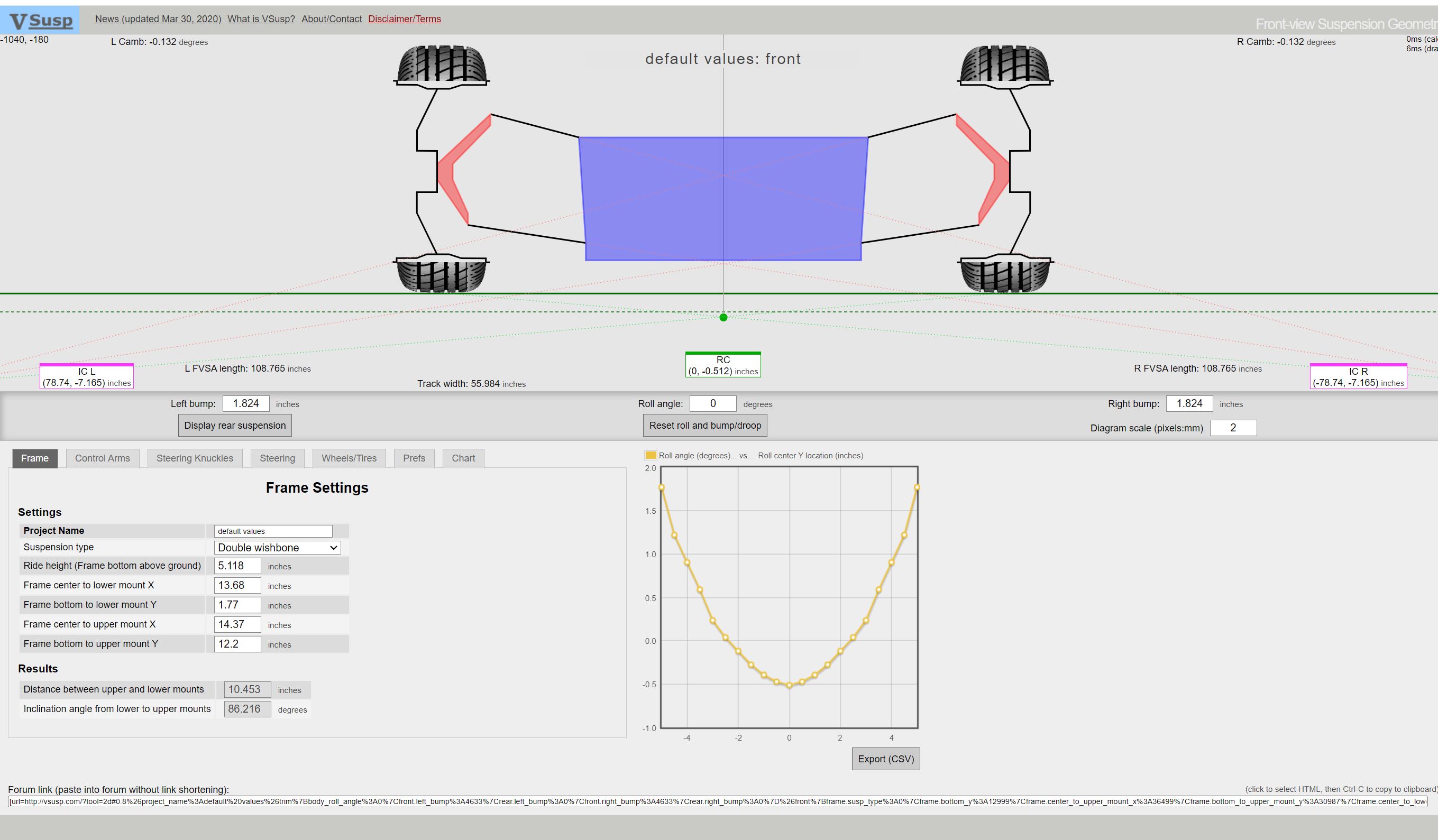 This basically says its going to want to plow like a mother because the rear roll center is up near 4" so basically all the corning load is on the outer front tire.....and I recall my first autoX with the car total stock there was no braking into the corner allowed.