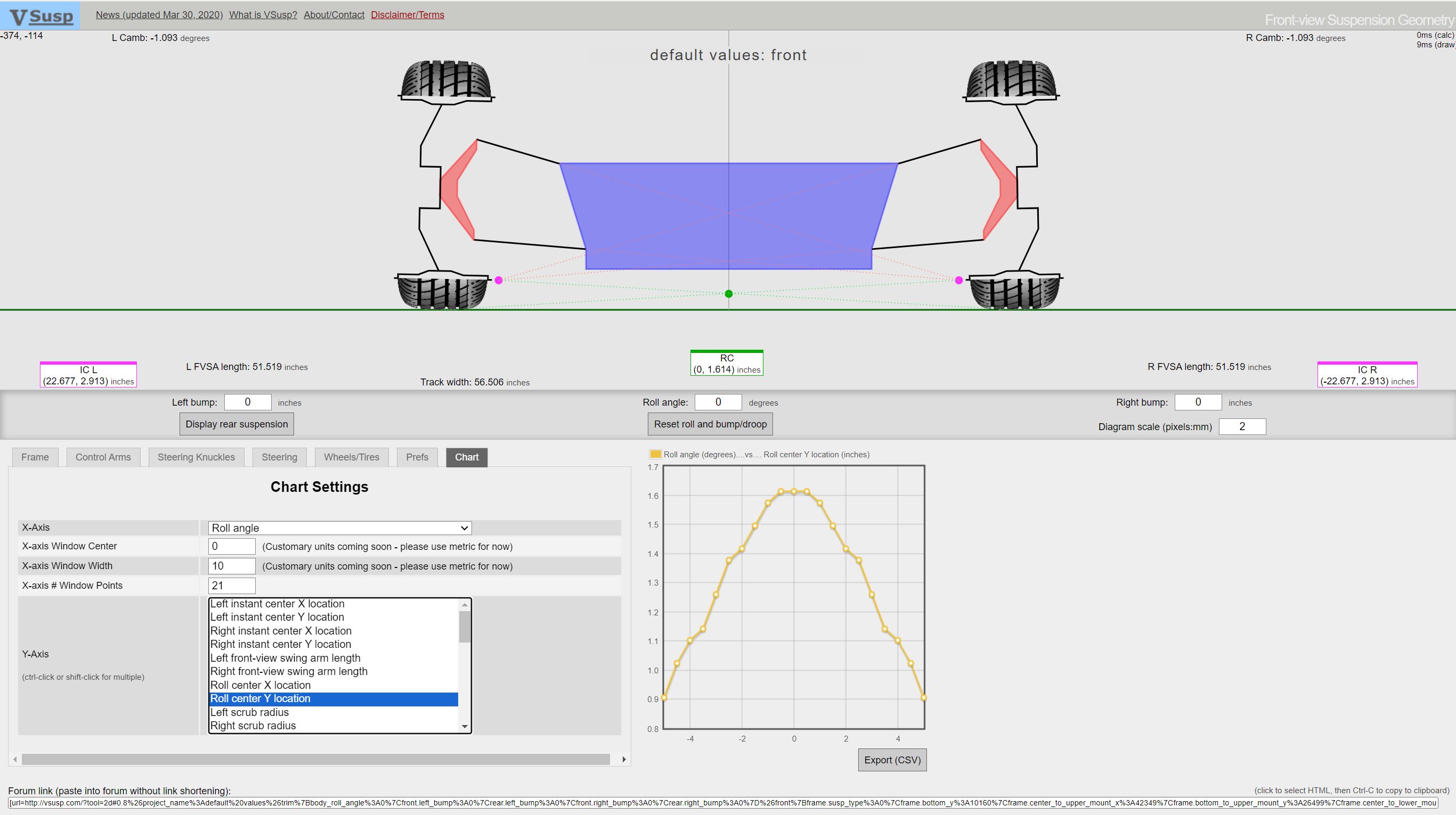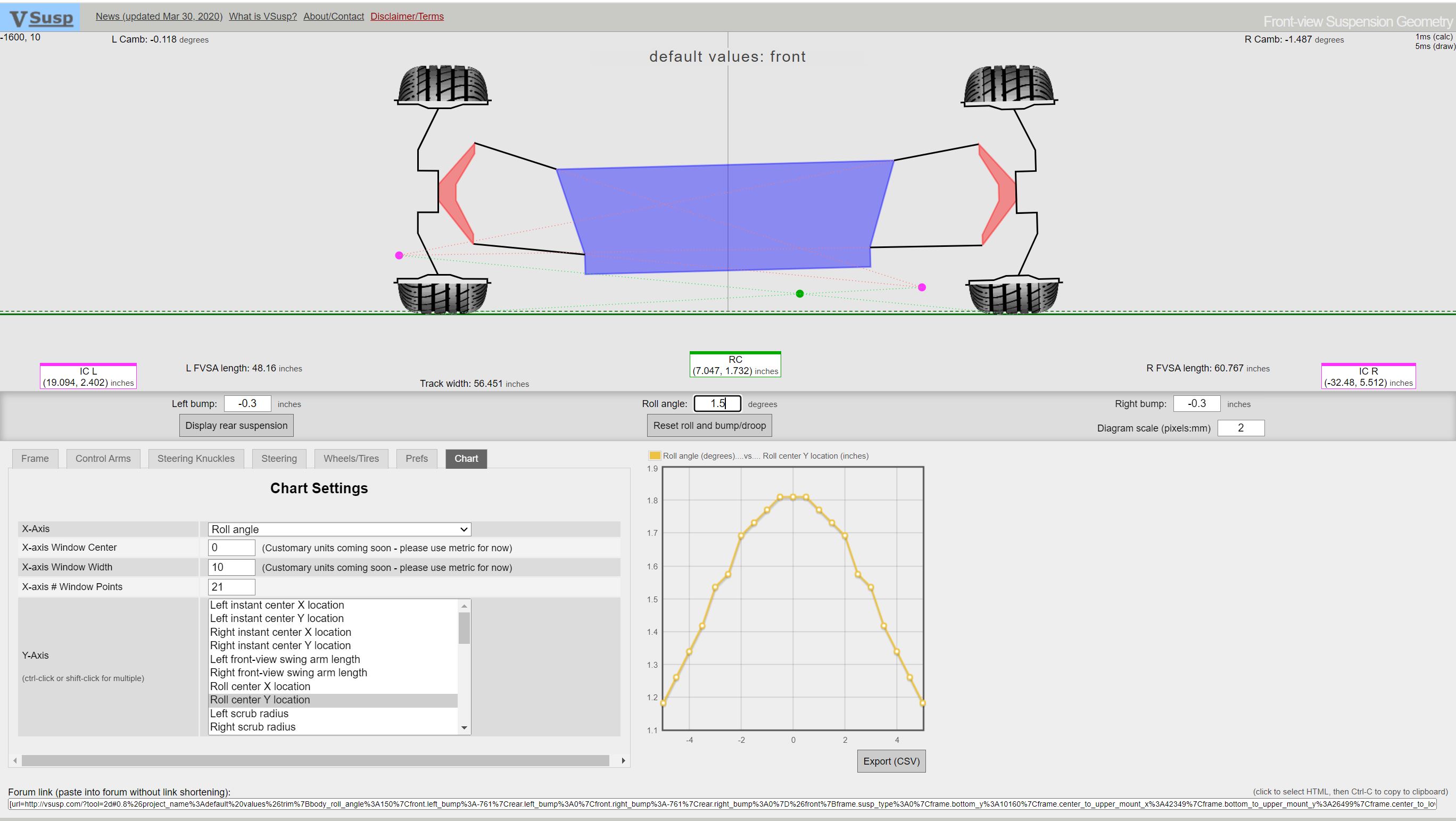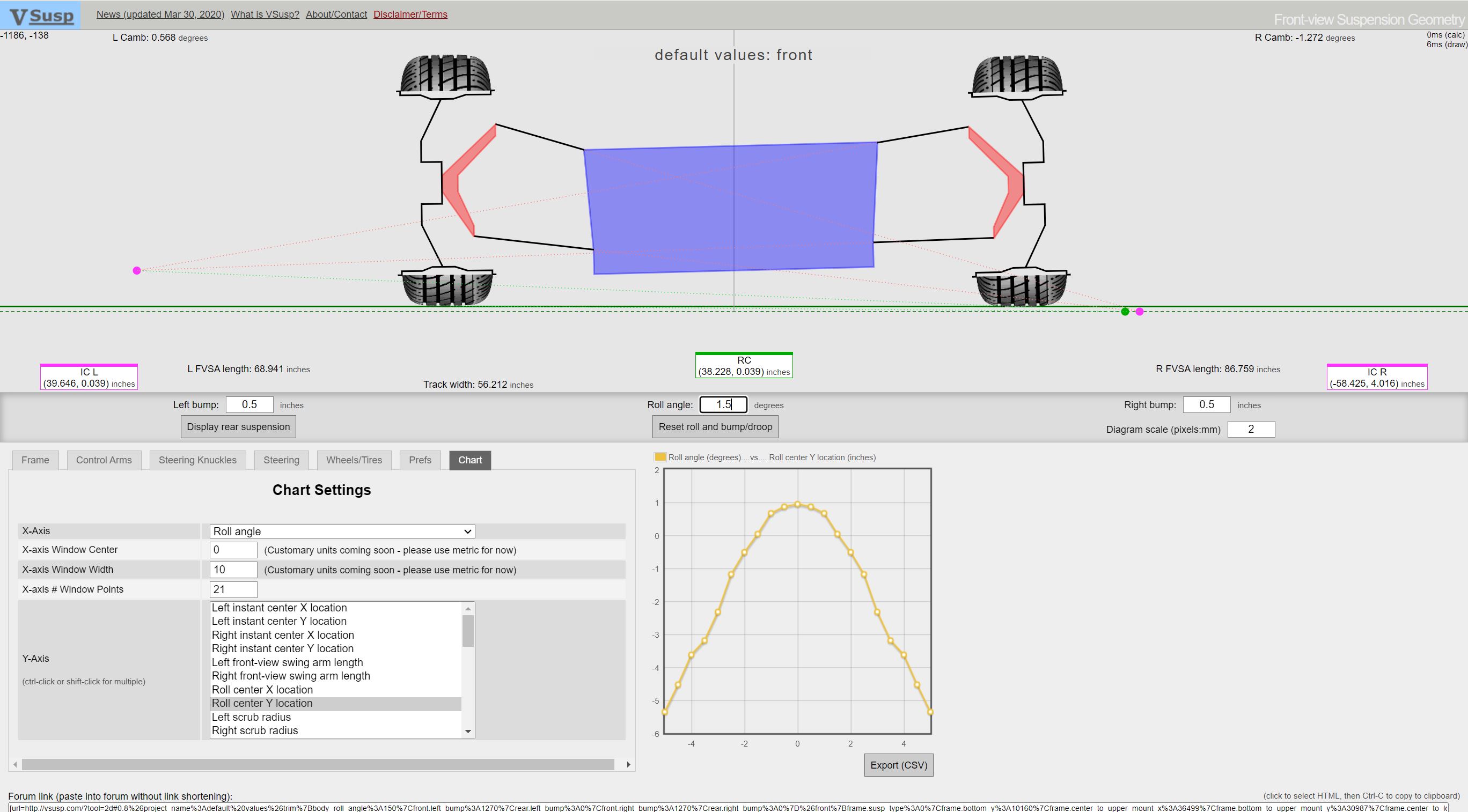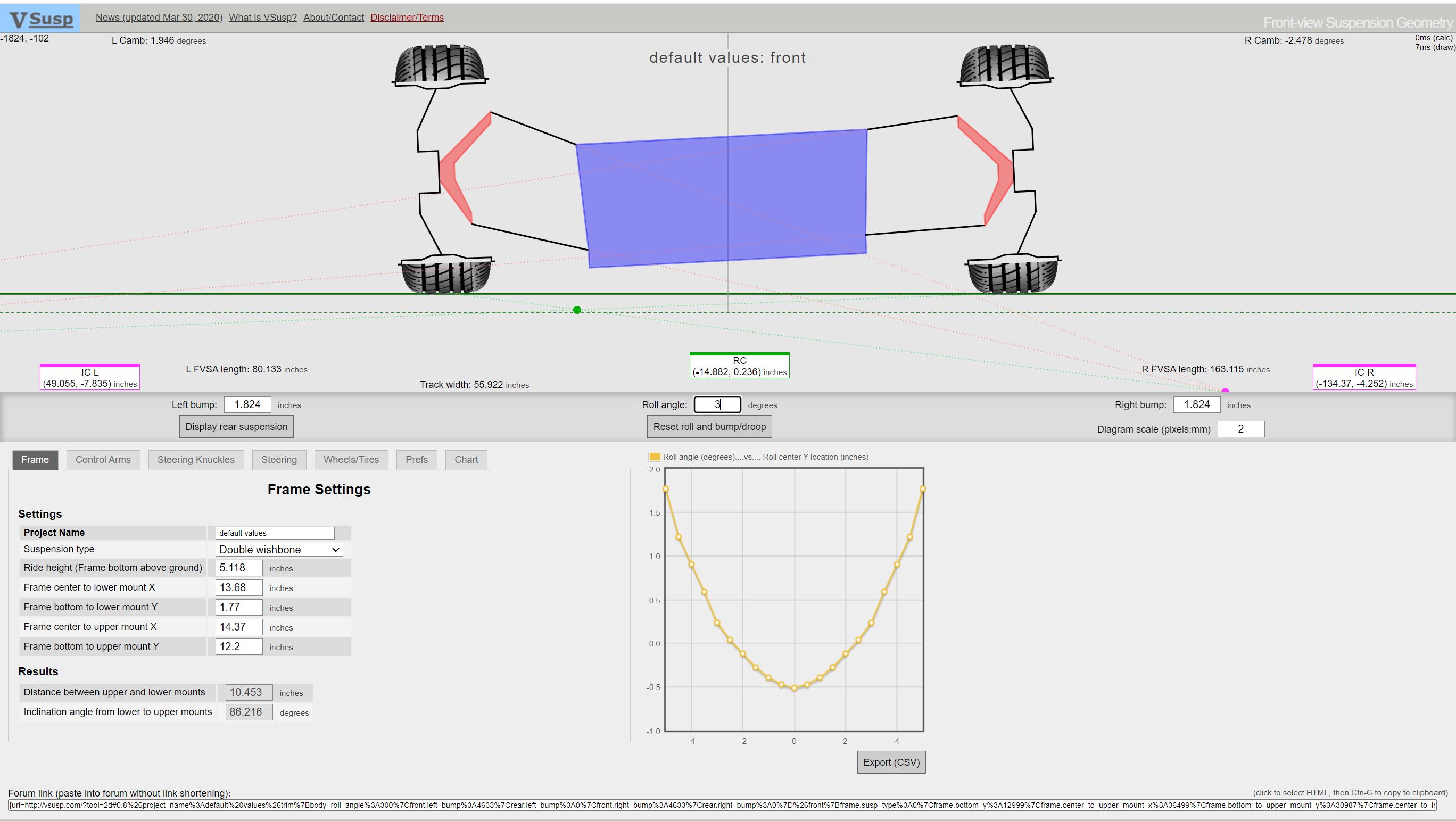 This basically says its going to want to plow like a mother because the rear roll center is up near 4" so basically all the corning load is on the outer front tire.....and I recall my first autoX with the car total stock there was no braking into the corner allowed.
