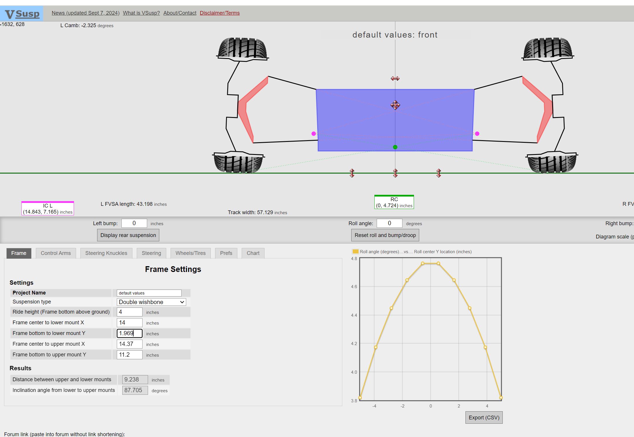New front A-arm mounts for 42% antidrive, check. Stock is +20mm, the new are -5mm, that sets the lower A-arm at 6.4%. Because the spindle is toward the read of the A-arm, the change only lowered the axle line 5mm.