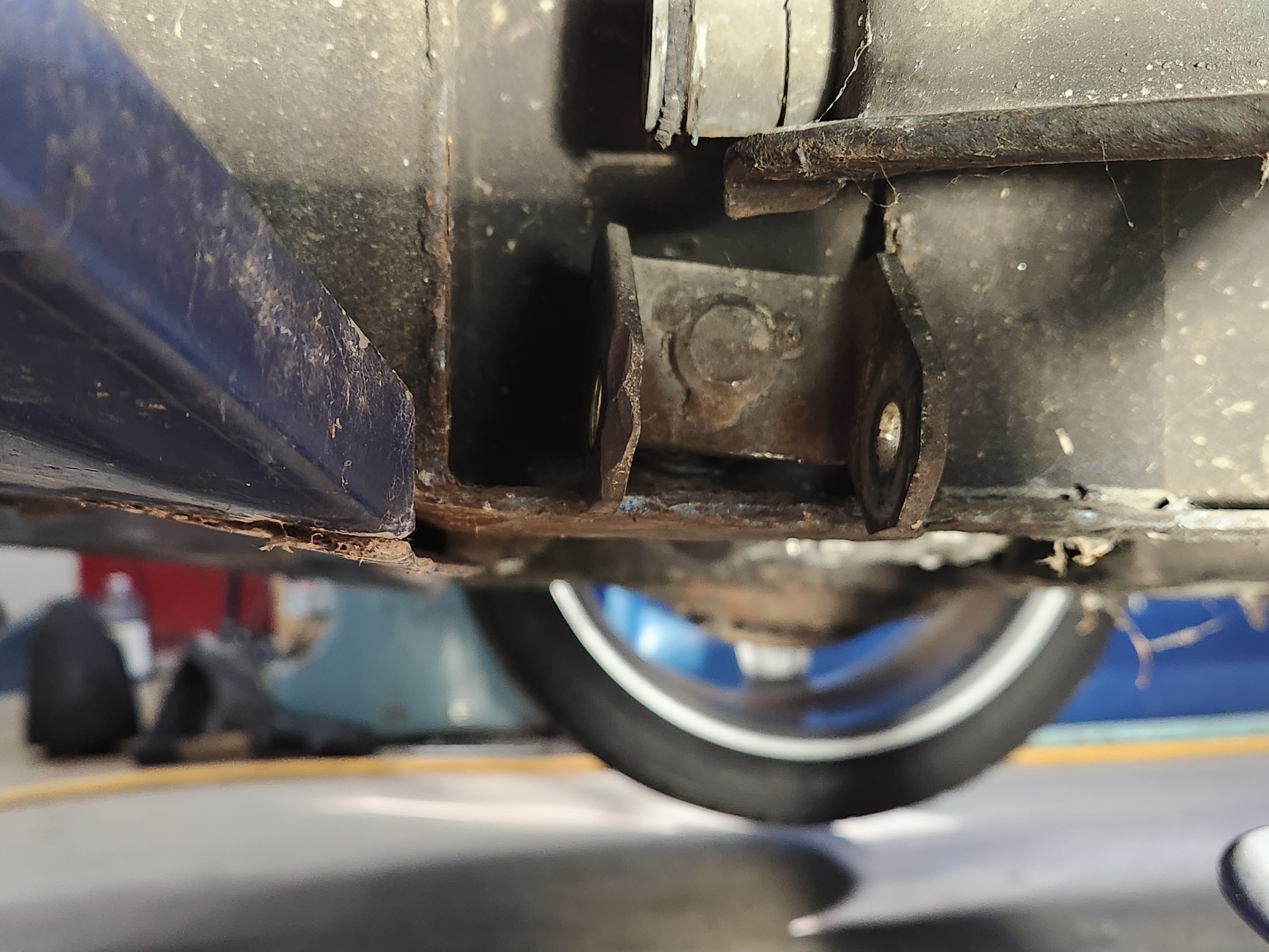 Sitting at the bench looking at the car sitting with a jack holding up the left front it struck me how flat the car was sitting...jack the right just inside the rocket panel, both fronts are up off the ground. Nice.