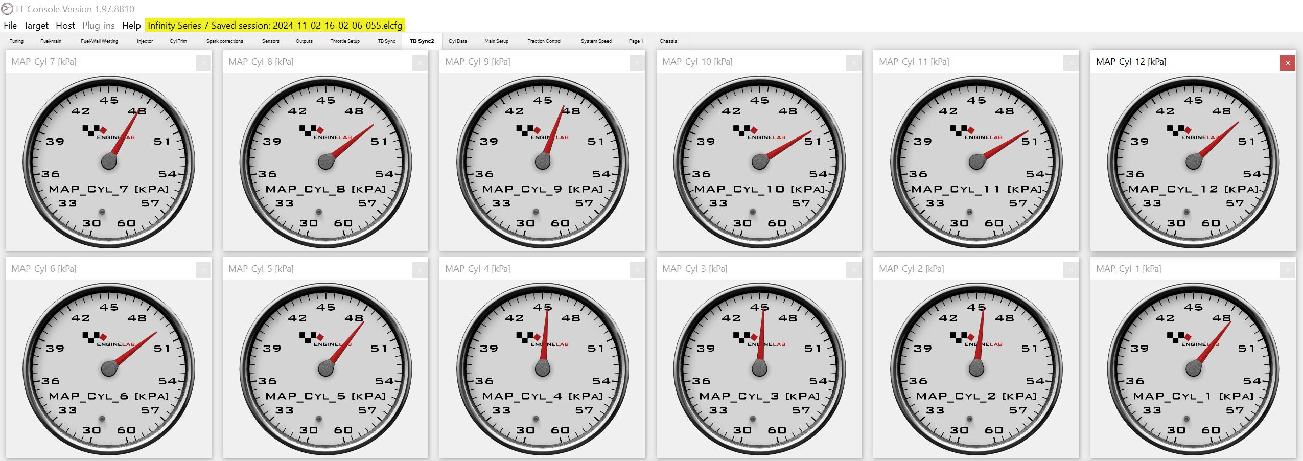 I also don't love the why I'm getting the cylinder MAP reading. The main MAP reading I'm very confident in but the cylinder are much harder because they go from true reading 1/4 the time to 0 3/4 the time. I don't have a great way to only look at them at the correct time so I take an average and then try to shift/calibrate it and it seems to work fine...as long as all the sensors are reading correctly, if 1 is say unplugged or otherwise malfunctioning the whole scheme gets buggered. I'll leave this fuel correction turned off while I think about a more robust way to do it a bit more.