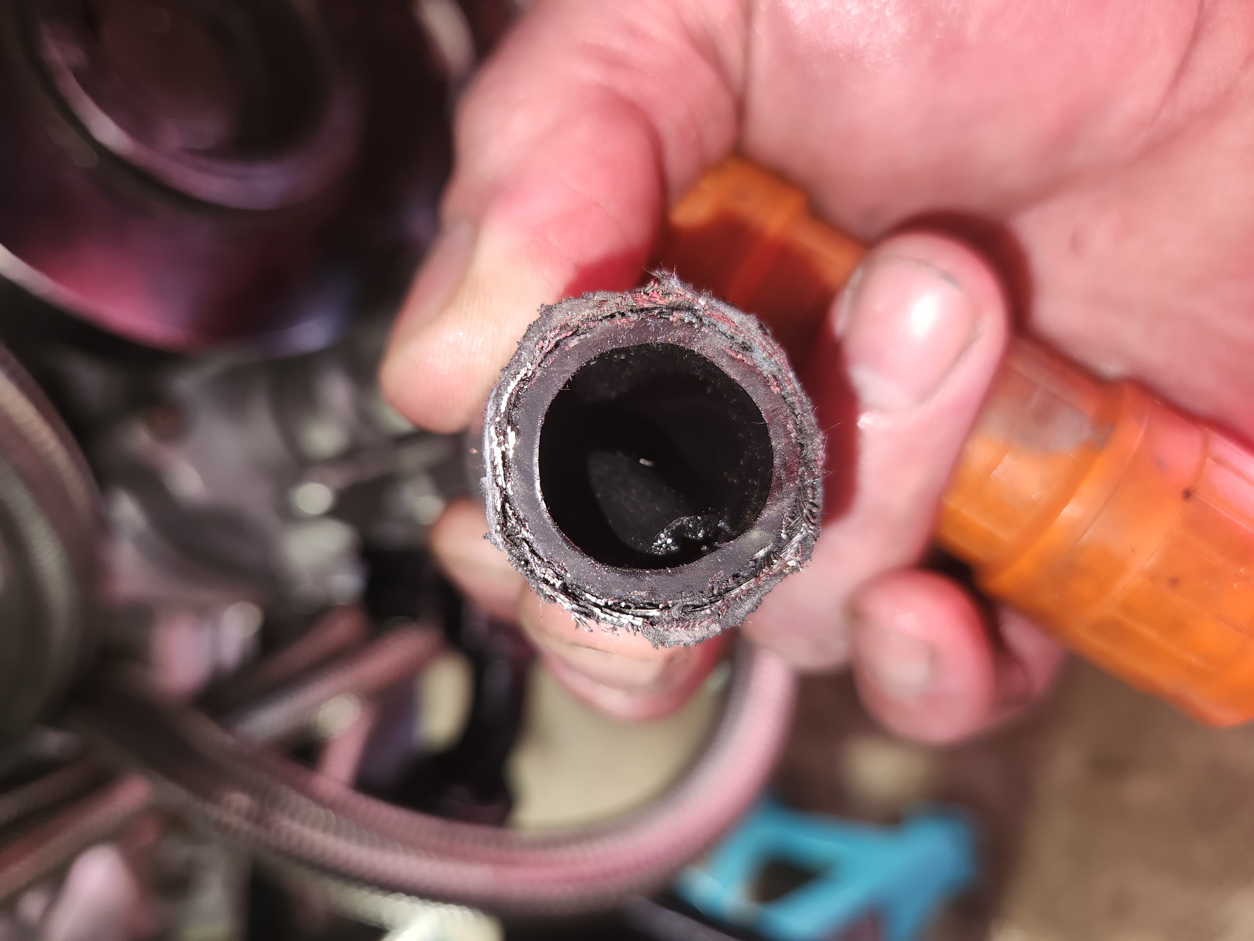 Its for sure the right hand side above that motor mount so at lunch today I cleaned off the goo and slathered it with the high temp orange and went back to work to let it dry. After work I decided to let it dry more and installed the repairs shock, found and fixed the idle timing issue ("Spark Timing" is the table, "Spark_Timing" is the output from the multiplexer that selects between the main table, idle table, and pedal blend calculation...the "_" matters), then played a bit more with the cranking fuel calcs and fuel timing and gave it a try. The timing was fixed but I also fixed it so it didn't start and the cranking drained the battery. After dinner and some time on the charger and a few more fuel tweaks it popped right to life better than ever. I let it get to about 70C and....its leaking. Its also still dropping a couple cylinders.