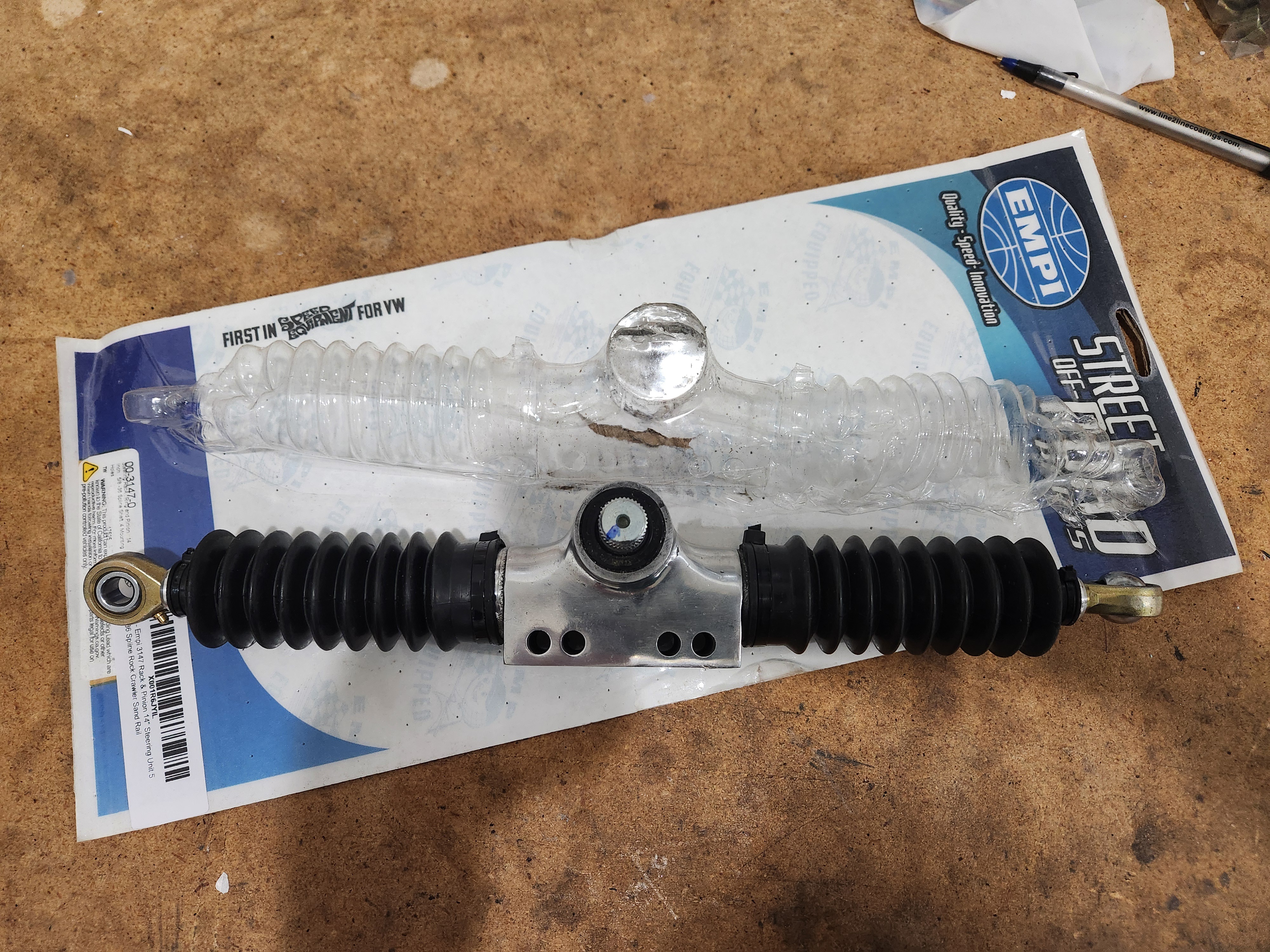 The new mastercylinder arrived Monday but I need to sort out the steering before I can install it...so I ordered the $160 dunebuggy rack I was eyeing: