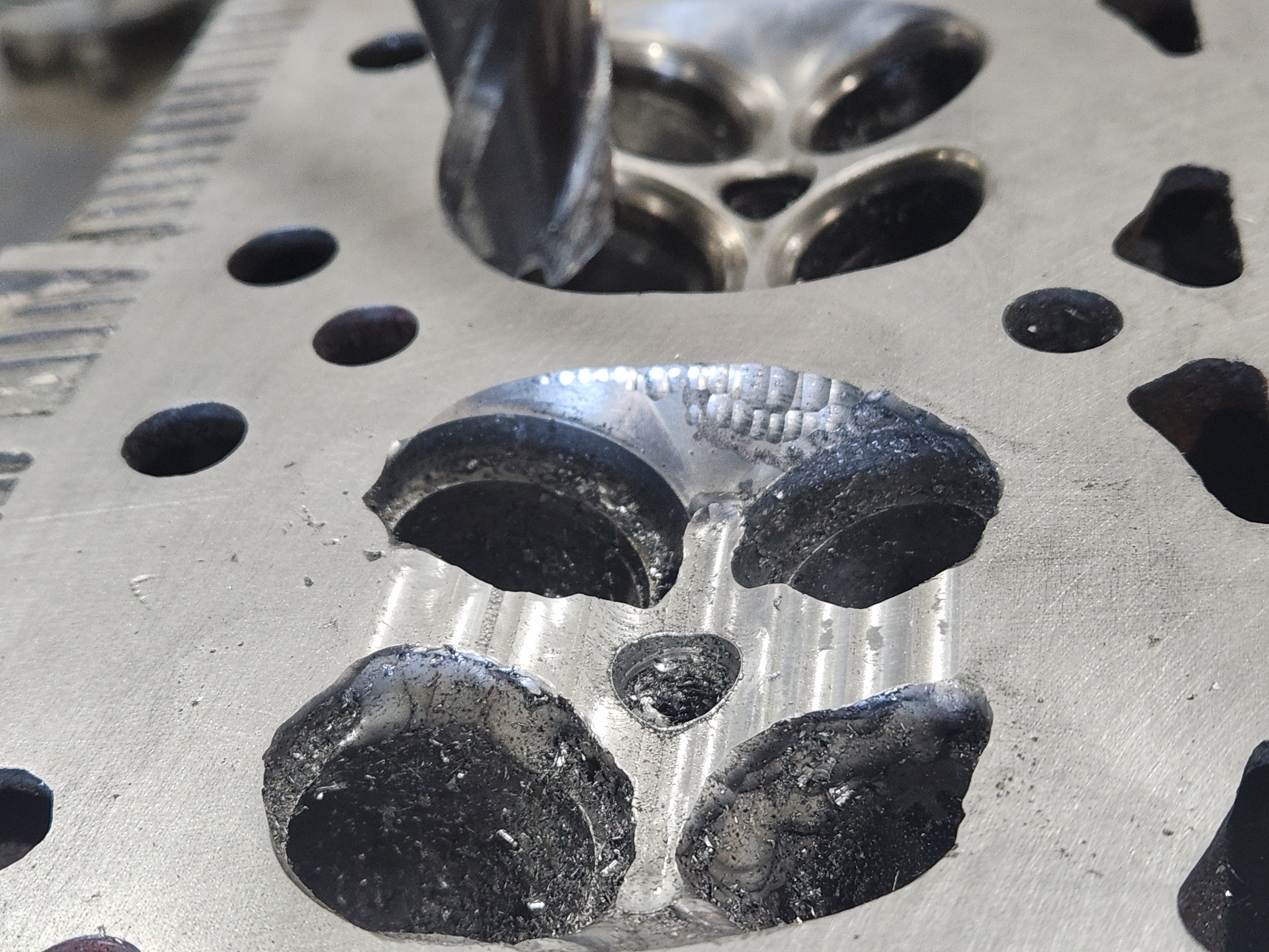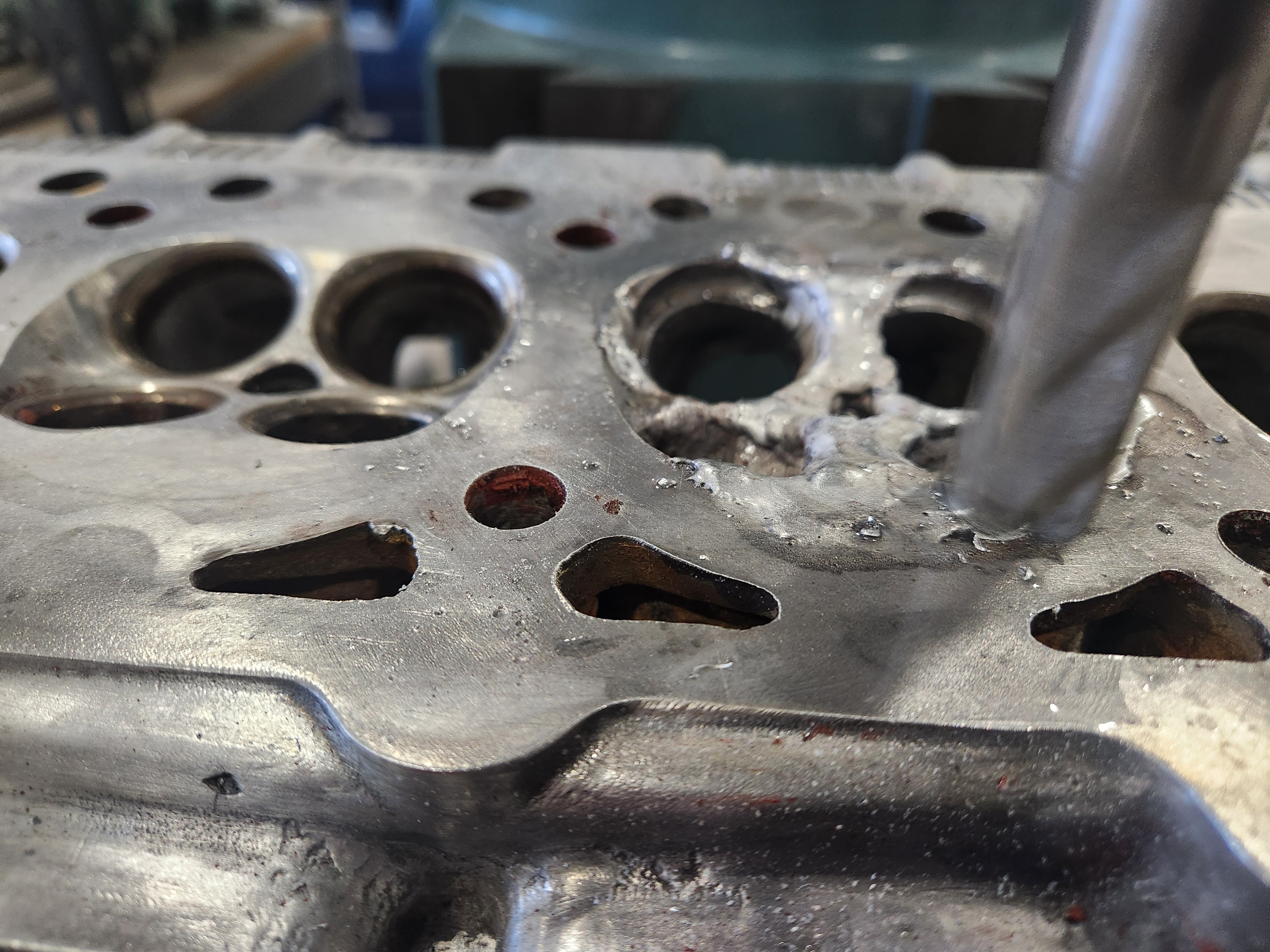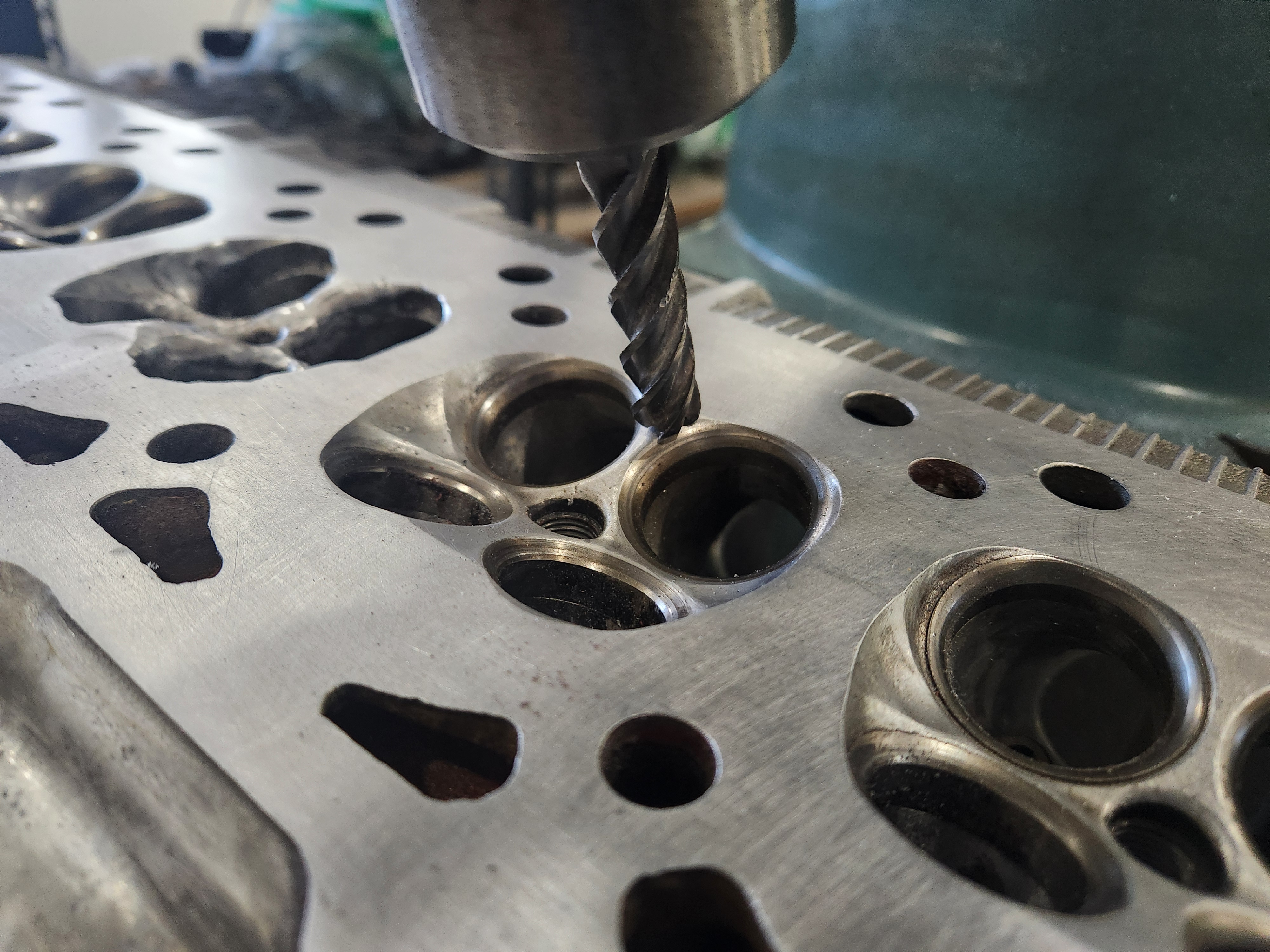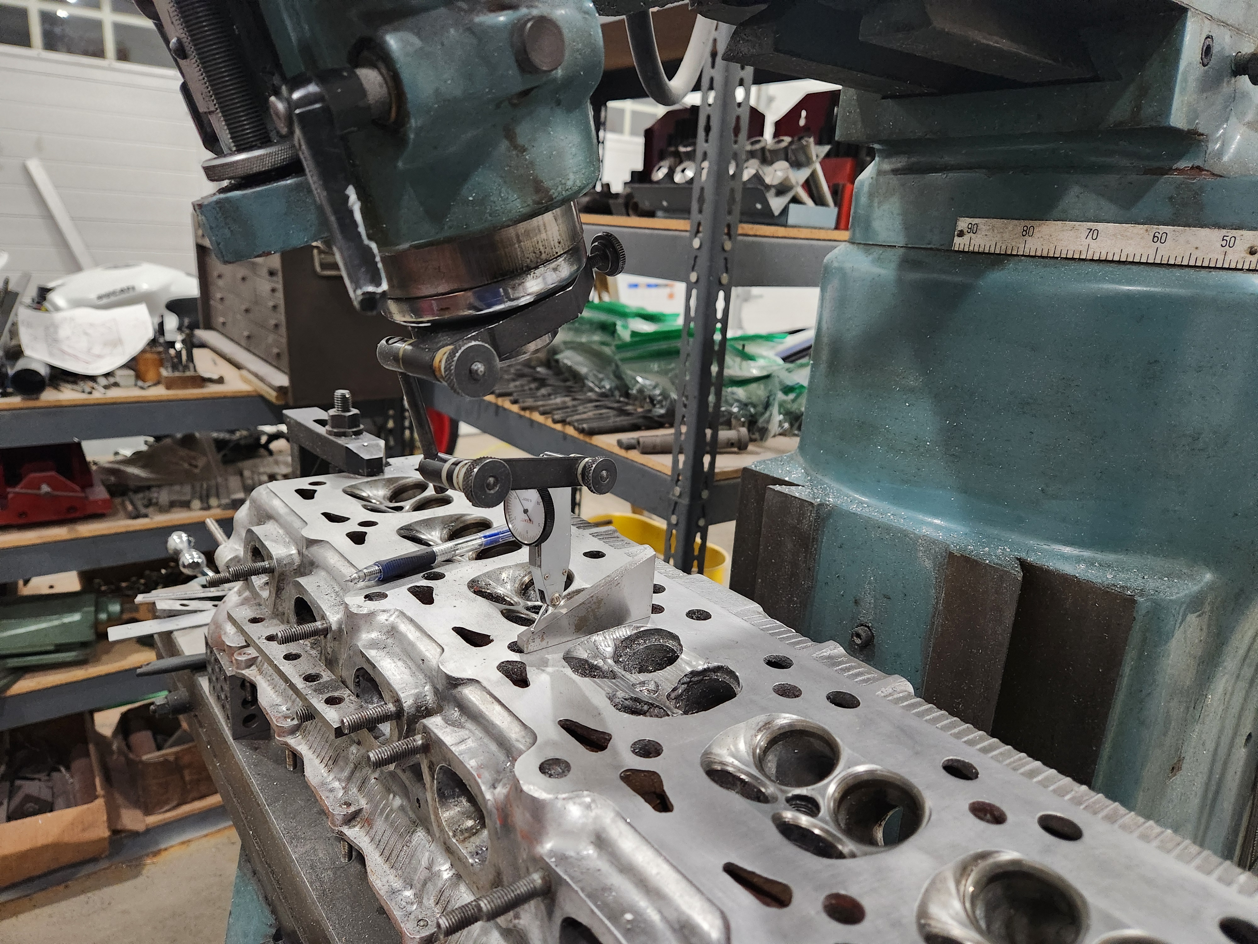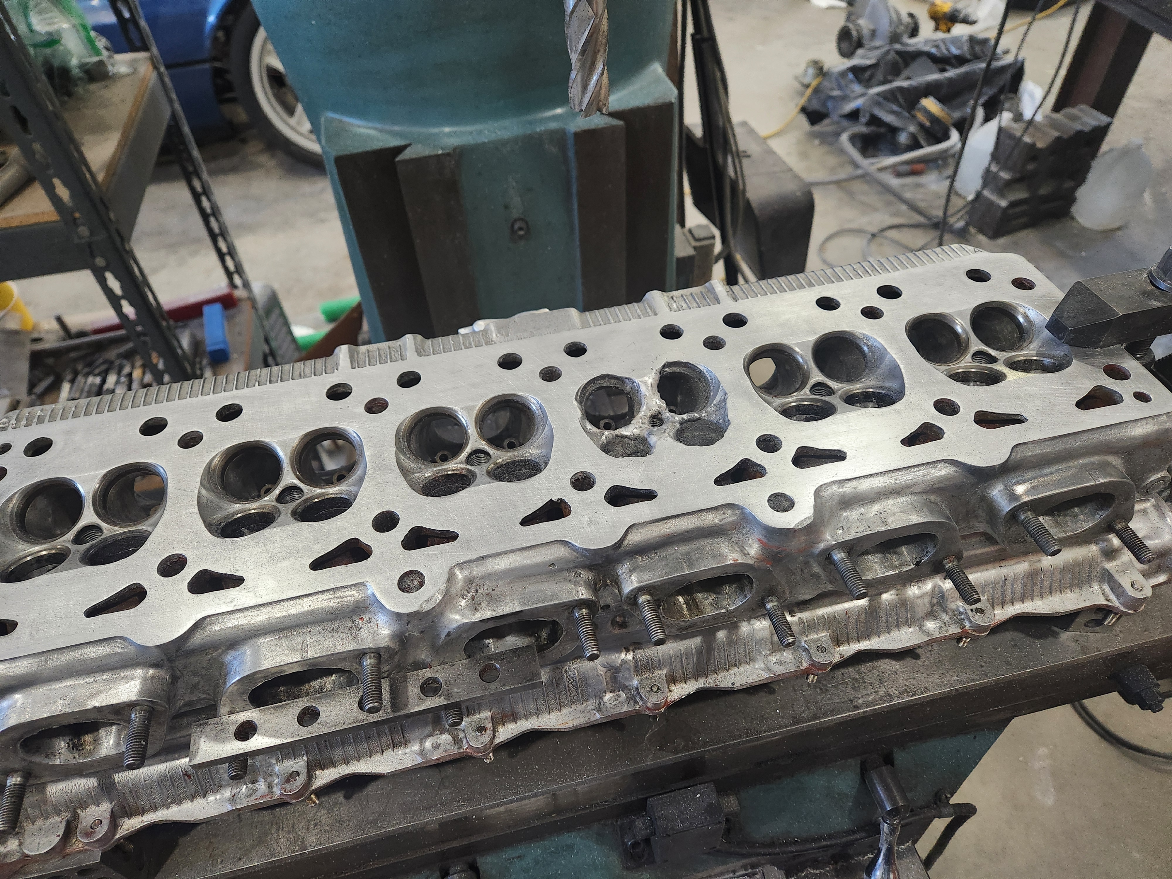I was hoping for serious car progress today. Out to the shop....son left quite a mess so got that cleaned up, cleaned up the head and got it on the mill ready to recut the damaged chamber and this showed up