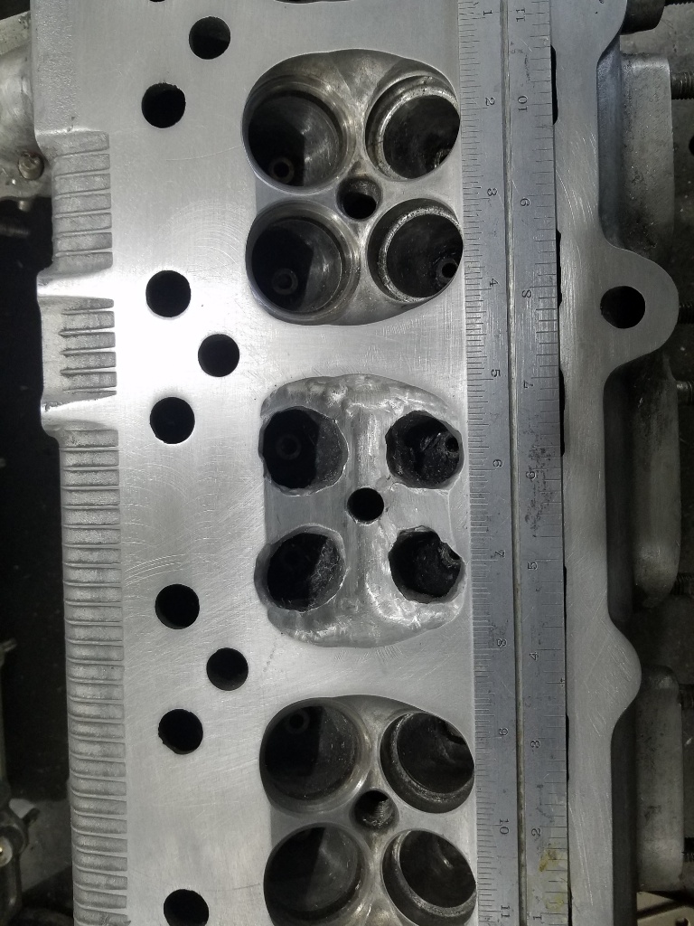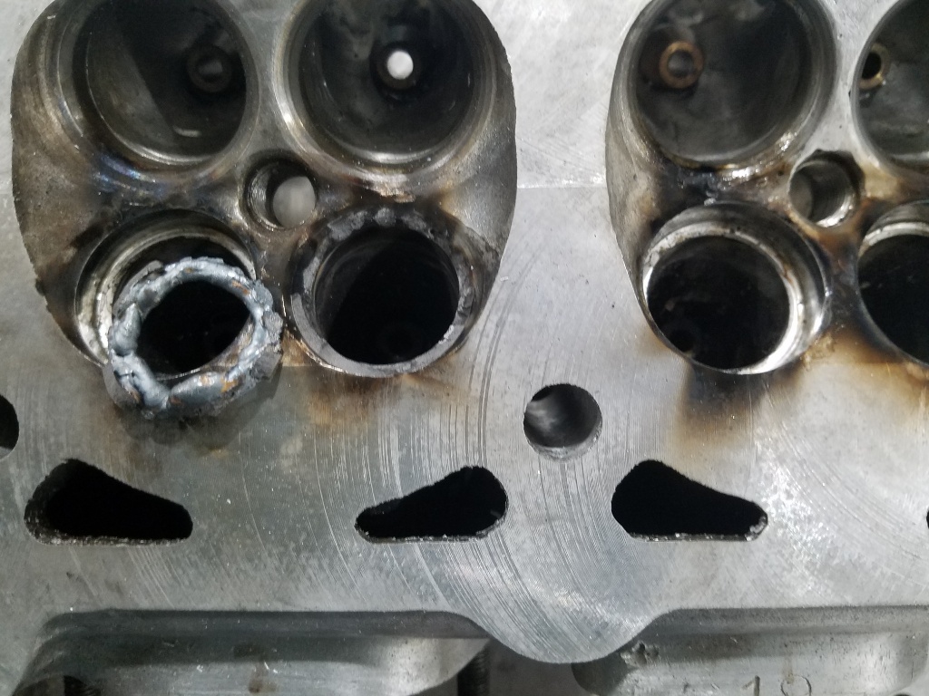 Pulled the seats out of the damaged head. It went pretty smooth, only pulled the weld of 1. They were a bugged to weld, they bubbled and spit metal onto the tungsten but o got them.