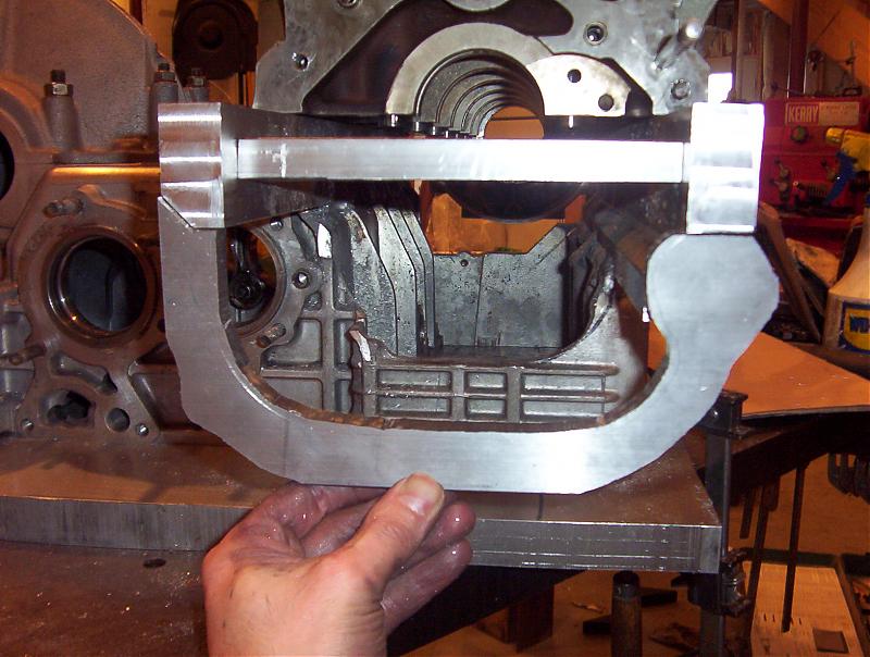 I got a little time today and made the flange that the lower part of the timing cover bolts to. This is going to be a dry sump set-up the little roundish area on the right side where the oil pick up tube would normally go will simply get a boss for an AN fitting and then a line from the an oil tank mounted somewhere.