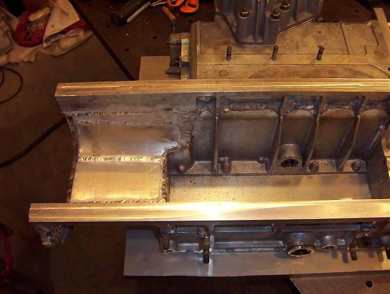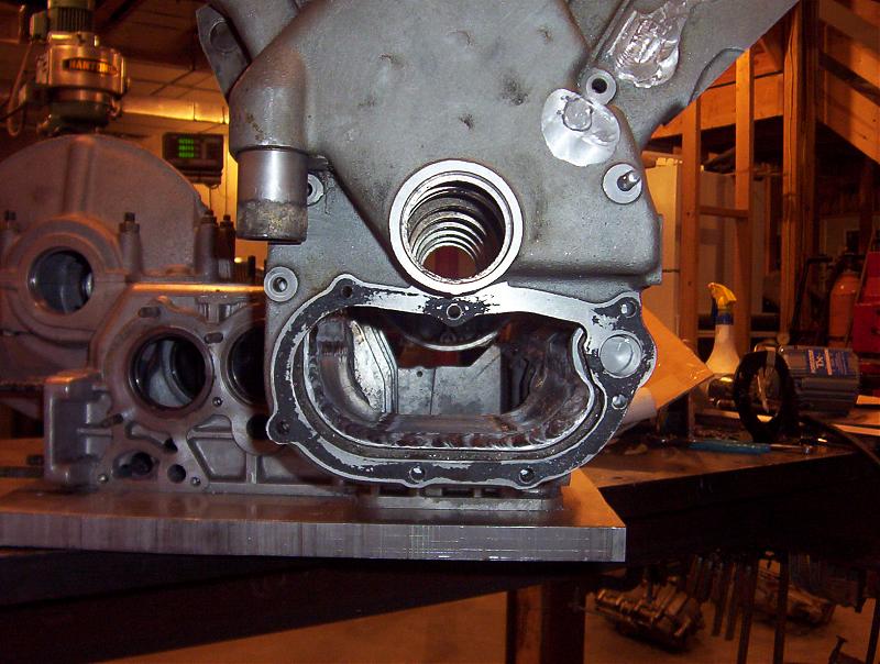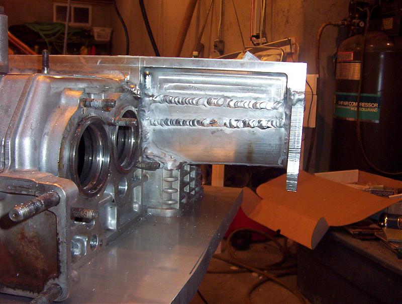 I got the right side all welded together today. Once I grind all the welds I do't think anyone will ever know it didn't come that way. I just need to make a semicircle and weld it on the left and the trans case is ready for final machining.