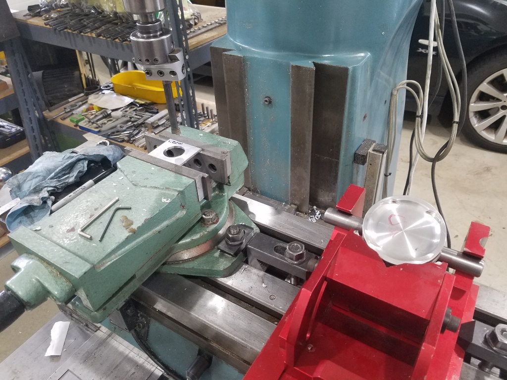 I set up a scrap piece in the vise and used it to set the boring diameter to .100" over the valve size to give 0.050 clearance per side