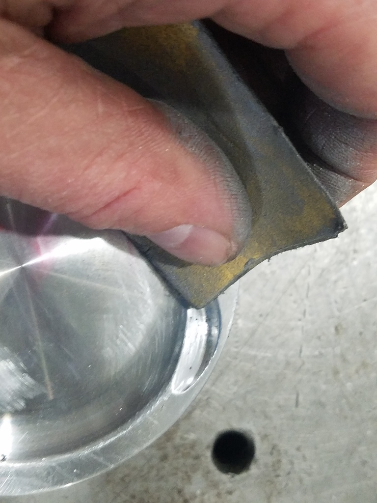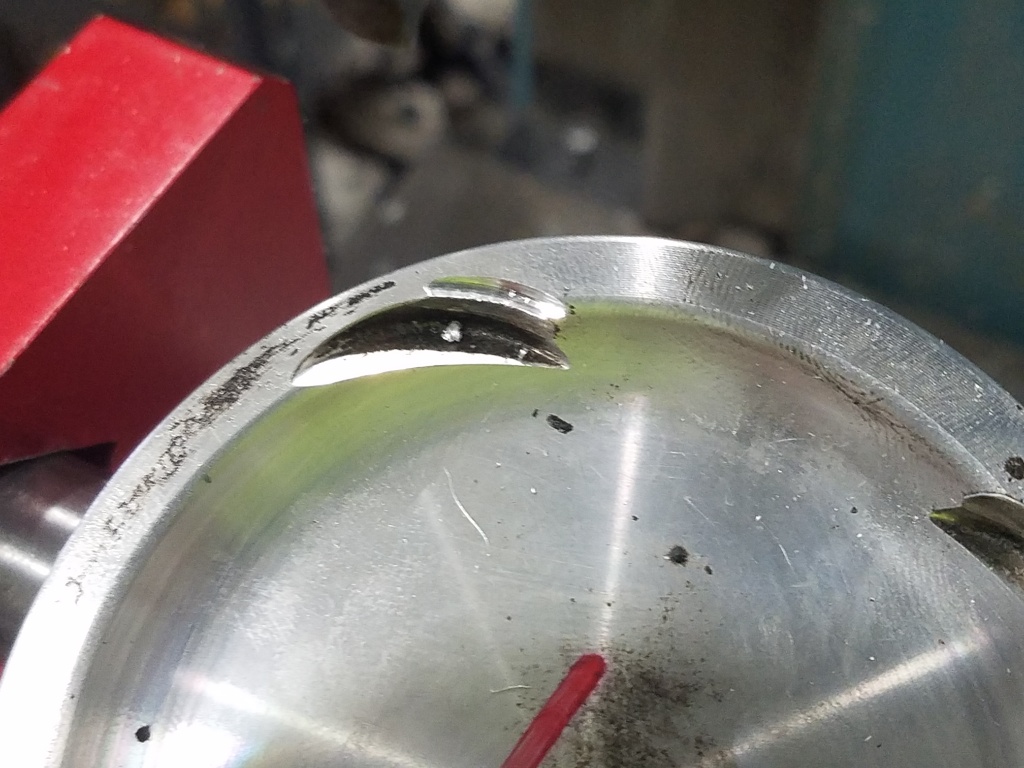 Then I picked our the piston with the worst looking valve marks, bought the cutter to the mark an moved over 0.050 and cut