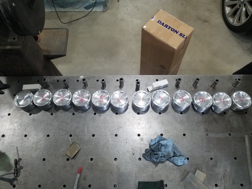 I notice a couple odd things. The angle on the exhaust pockets was 20 not 21 I think and the spacing on the intakes was 36mm (exhaust side) not 38 but that is all fixed. The piston I realized the lose vise on is ok...but I have 1 more new piston so I'll just replace the does look quite right one. Job done now I can rebalance them