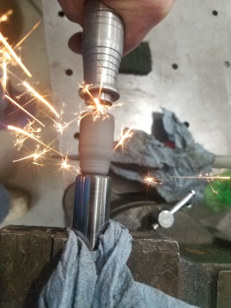 The ground rod I got from mcmaster was a couple tons bigger than the wrist pins so I sanded it down