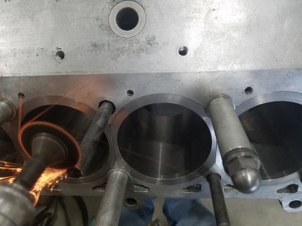 so even when things seem done on this....they aren't. The center 5 head studs on each side are original in their original location, the rest are relocated custom studs. the TR heads are not quite as tall as 400 heads so I knew the original studs were on the long side.....and it turned out a couple not quite ok.