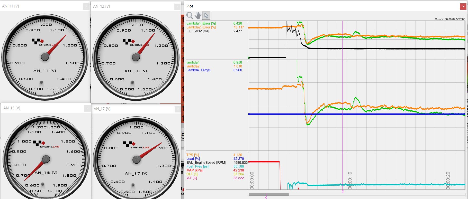 This evening I spent some time digging through log data...the NB sensor are working just not the way I expected. I was displaying a lambda based on a simple lookup table created from the bosch data sheet...but it looks like the pullup is buggering it so the table was all wrong. its supposed to be 1.0 lambda at about 0.5V, rich above, lean below with a big dead zone from like 0.3-0.7. that's what I planned for but not what I have....it looks like I'm reading 0.5-1.5V with 1.0 lambda at about 1.0V, lean below, rich above so backwards and offset 0.5V