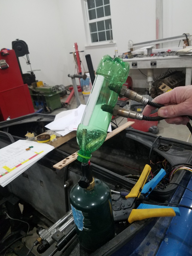 That sort I spent today taking reading on my O2 sensor tester......a mt dew bottle, and propane supply. One sensor is the innovate and one driving on the ECU.