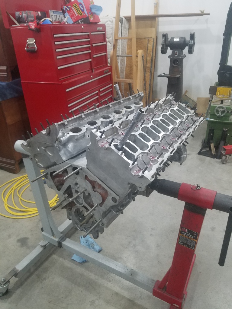 The cylinders are back in the block and heads are back on other than torquing....it takes forever to get the frikin nuts on.