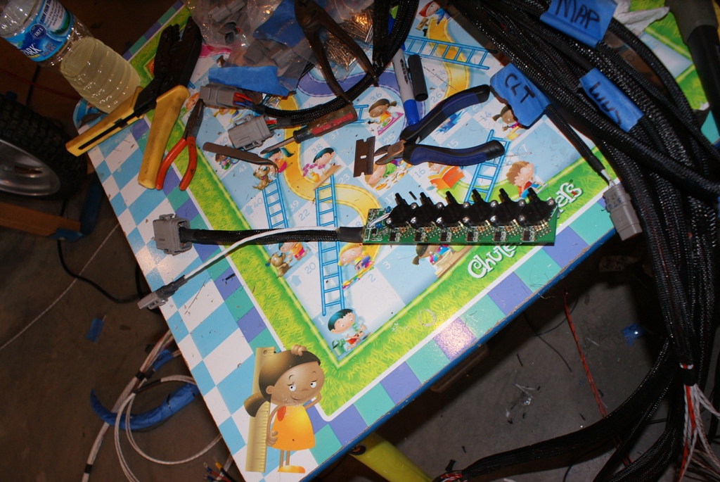 A long day playing with wires. The harness is mostly sleeved, just the front part remains and I want to put the harness in before doing that part. I've also got about 1/2 the engine bay connectors installed on the harness.....another 6-8 hours and I should be ready to put the harness in the car for real