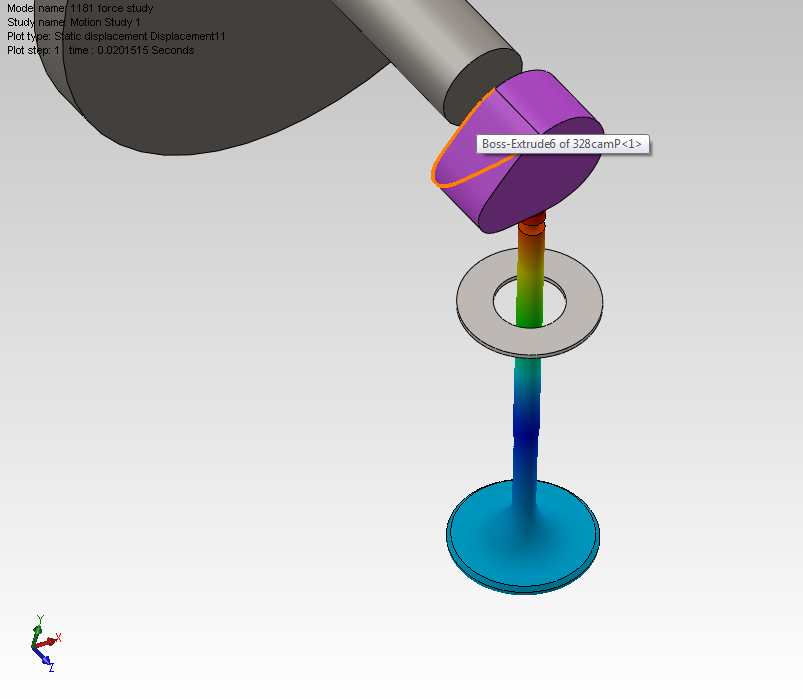 I've been able to run the 308 QV valve geometry and cam lobe thru this motion analysis, checking harmonics, deformation, etc.. It's a time consuming process though and requires that I run a liquid chilled processor! An interesting thing I noticed was that at near 8k rpm the tappet bucket exhibited a harmonic distortion on the bottom skirt, for me that answers why I've found some of them to have cracks in them like a bell. Over revving the engine runs the very real risk of a tappet bucket to harmonically crack at the bottom skirt.