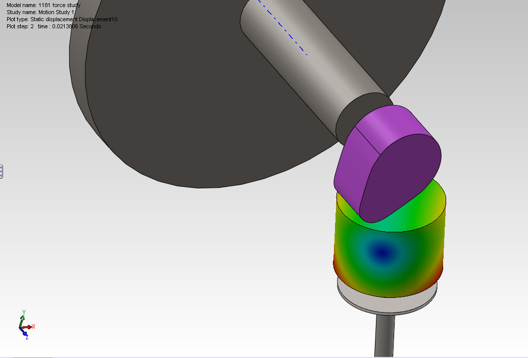 I've been able to run the 308 QV valve geometry and cam lobe thru this motion analysis, checking harmonics, deformation, etc.. It's a time consuming process though and requires that I run a liquid chilled processor! An interesting thing I noticed was that at near 8k rpm the tappet bucket exhibited a harmonic distortion on the bottom skirt, for me that answers why I've found some of them to have cracks in them like a bell. Over revving the engine runs the very real risk of a tappet bucket to harmonically crack at the bottom skirt.