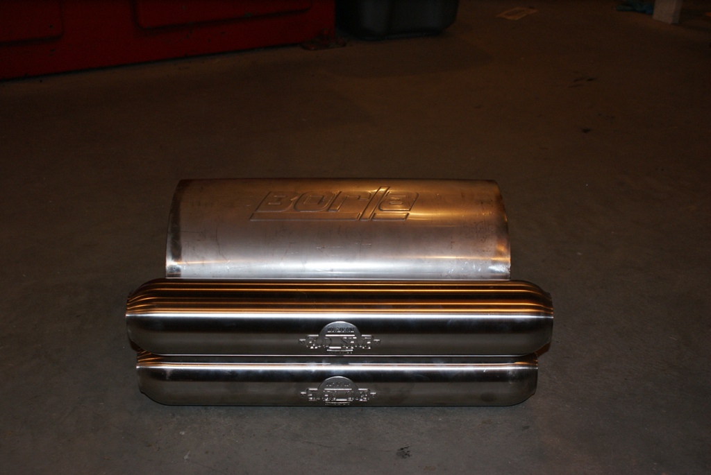 I decide the mufflers need to go sideways and that the flanges make them too long...flanges off, mufflers welded to a 4 pack.