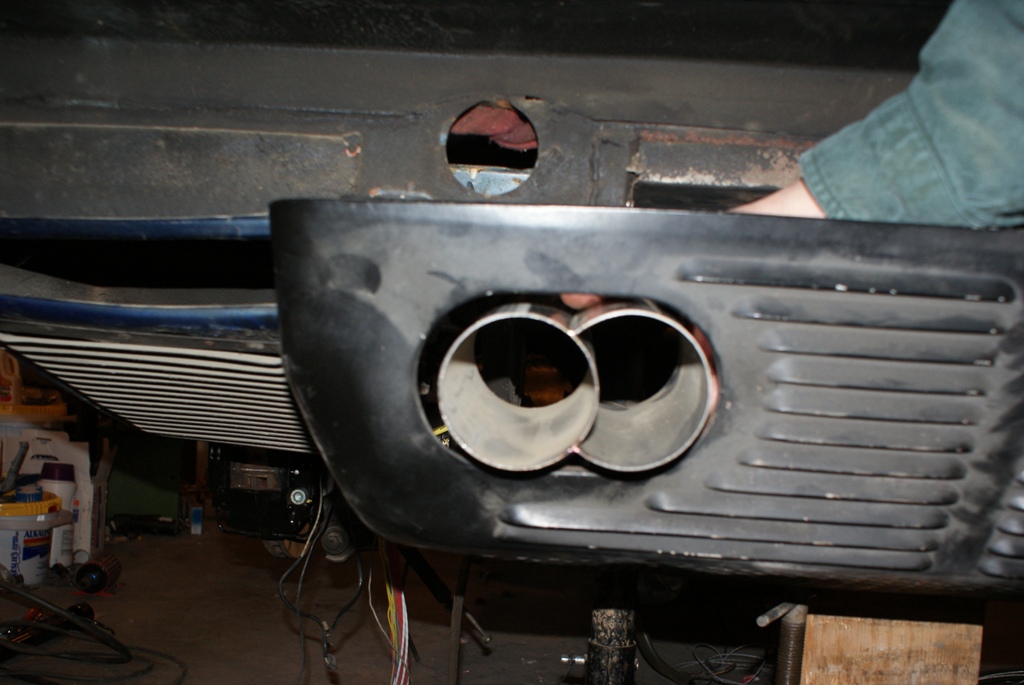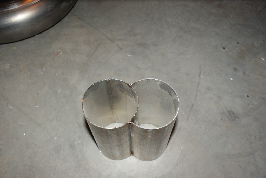 The other thing that's been troubling me for some time is what to do with the tips. I roughed up a dual 3" that I think looks 3/4 decent and fits the stock opening in the cover pan.......I'm thinking this will look good if I TIG the seam, sand and polish it.