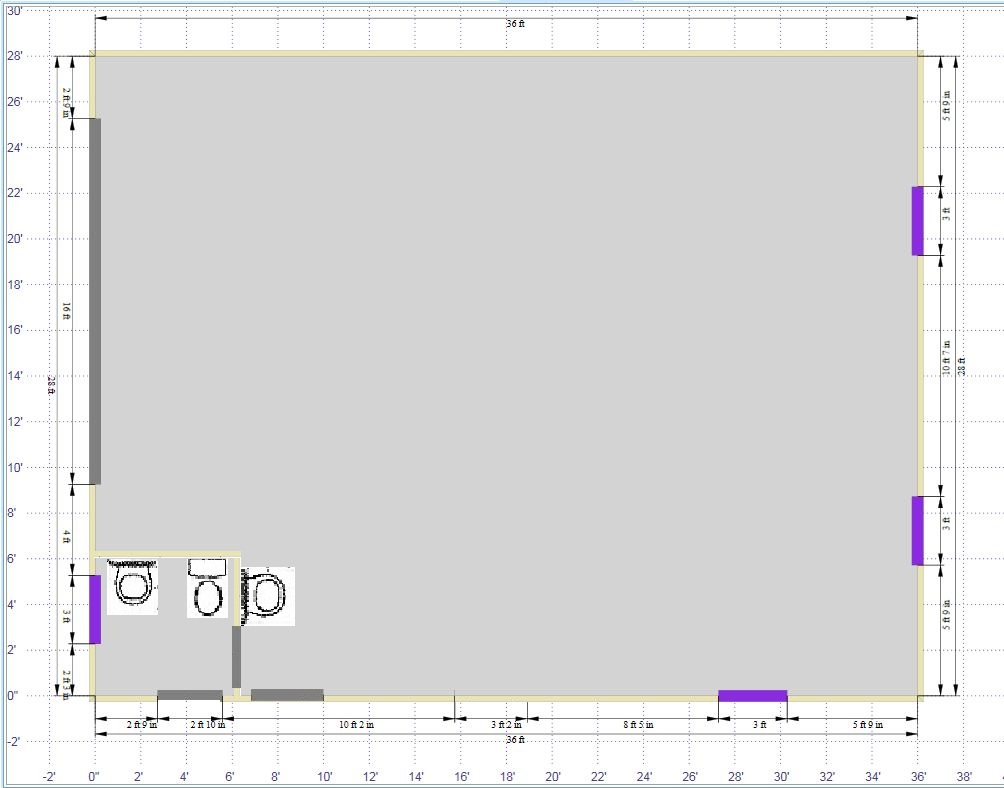 After that paint can add other thoughts and here's wereI am. I'm thinking just close off space for a powder room and give it a door from the shop and outside for pool use....shop sink just outside so plumbing is easy and I'm not messing up the powderroom sink. Open inside is easy and the most veritile...and easy. I also went with a single do0r again thinging versitile. 28' trusses were not much more than 24', like $85 vs $75 so I went 28x36 but this weekend I'll take a tape measure and see what fits....