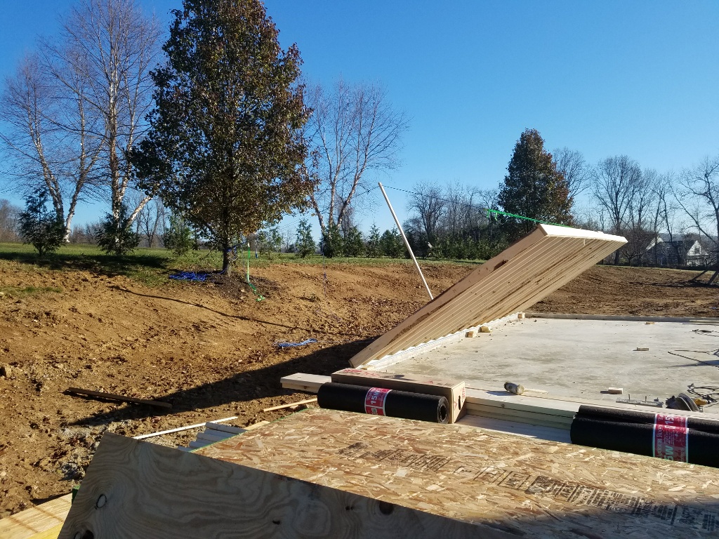 I got a little over 1/2 the sheathing on the walls yesterday, that should be wrapped up today. The trusses will be delivered the morning of 12/11 and I have an Amish crew standing by to meet the truck and complete all things roofing. The trusses themselves are $2300, $1350 to install plus I'll probably end up with about 2 hours of delivery crane time at $125/hr. Then $850 to sheet using the material I have it and $3300 to roof it using their materials.