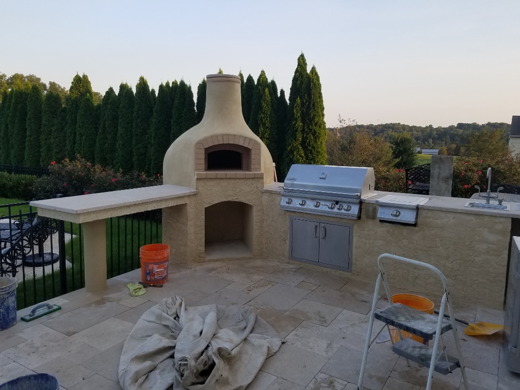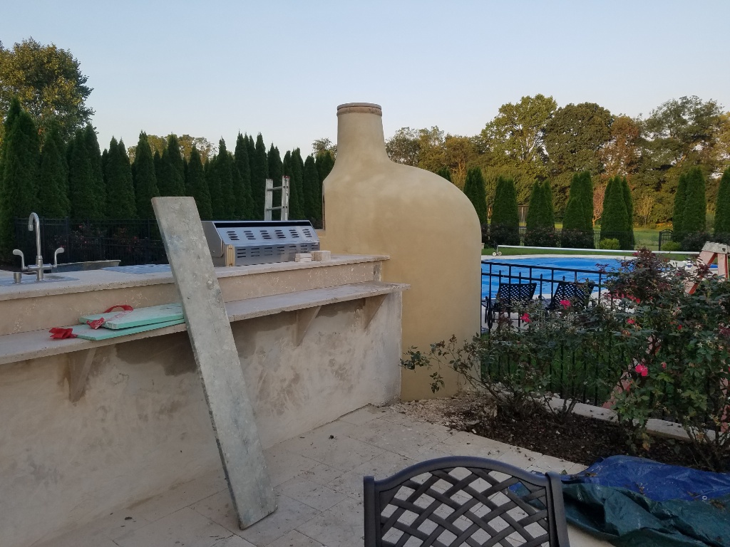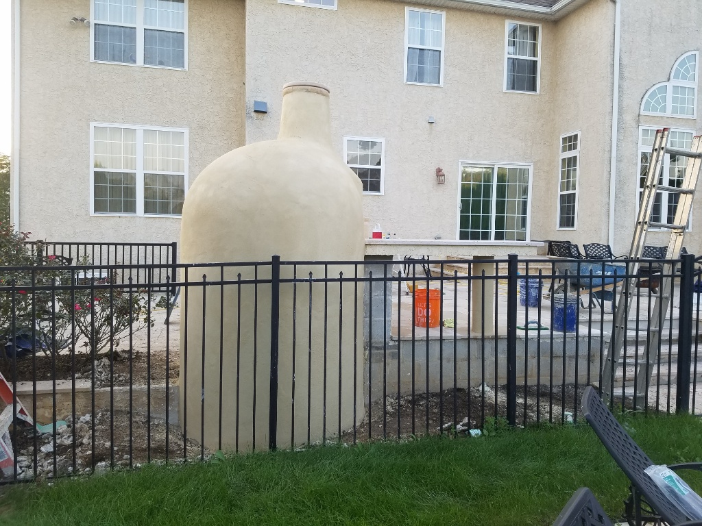 I also learned some important lessons about stucco color being completely dependent on moisture......the oven turned white as it dried so I had to do it a second time. The best I can figure the problem was the base...i loaded it up with latex modifier to make it basically waterproof to keep the insulation dry....so it didn't suck any water out of the top coat....white and Lana freaked and I lost about 4 hours and 2 $50 bags of stucco.