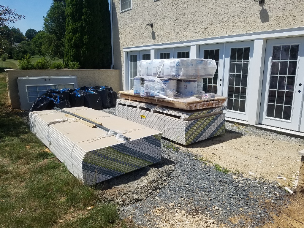 Heated floors are a problem for another day though, for now its drywall. Yesterday the driver pulled up, I pointed to the patio , he said, yeah, we only deliver to the driveway. What? you delivered all concrete and block over there..yeah,we are't supposed to they are getting really strict....ends up in a stand off and me telling him I can't use it on the driveway so take it back and going inside. Lana asked whats going on, walks out and 5 minutes latter its on the patio....she's just way better at getting her way than I am.